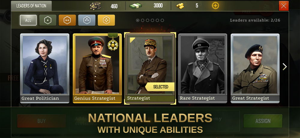 - National leaders: choose from dozens of historical figures and use their unique bonuses.