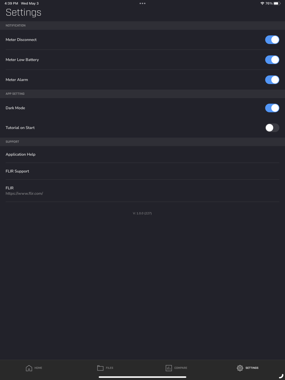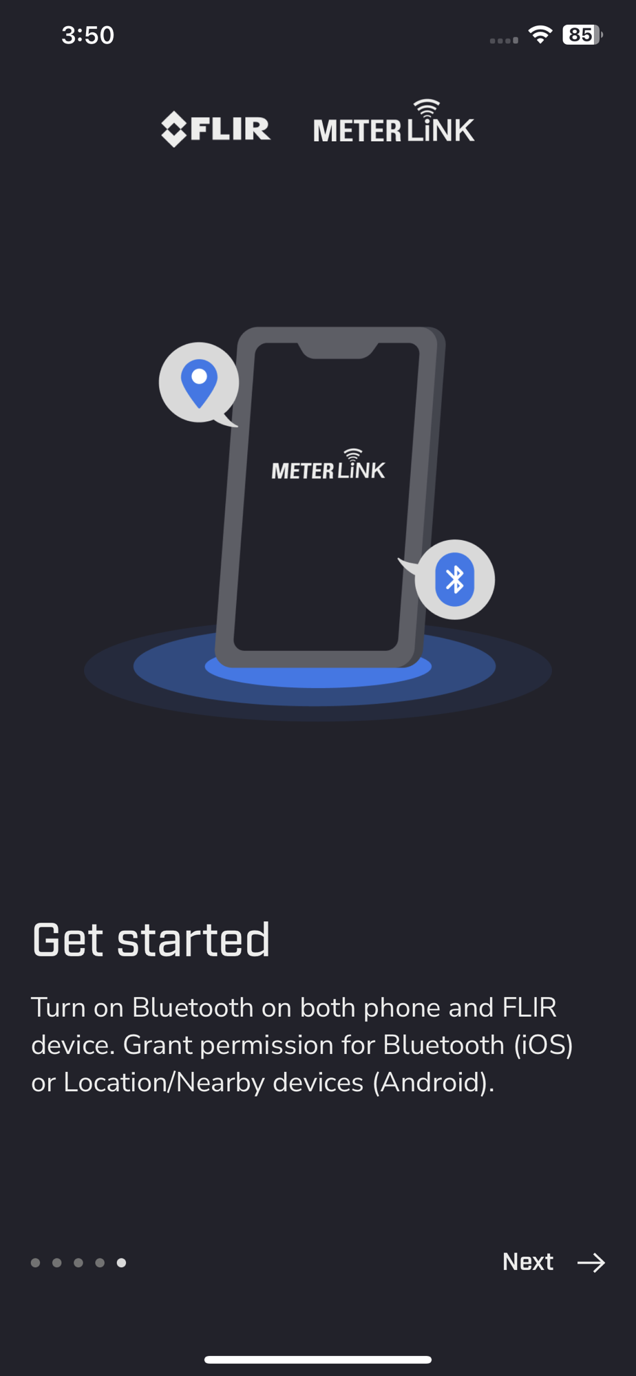 - The FLIR METERLiNK® app allows you to compare log files, create detailed, custom, PDF reports, adjust dark/light display mode options, connect it to the FLIR support site for fast troubleshooting, and get automatic app updates.