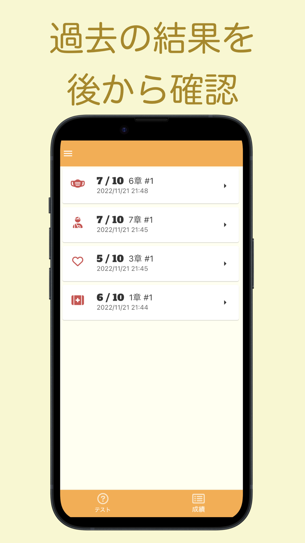 実施した問題については履歴から確認し、間違った問題を復習できます。