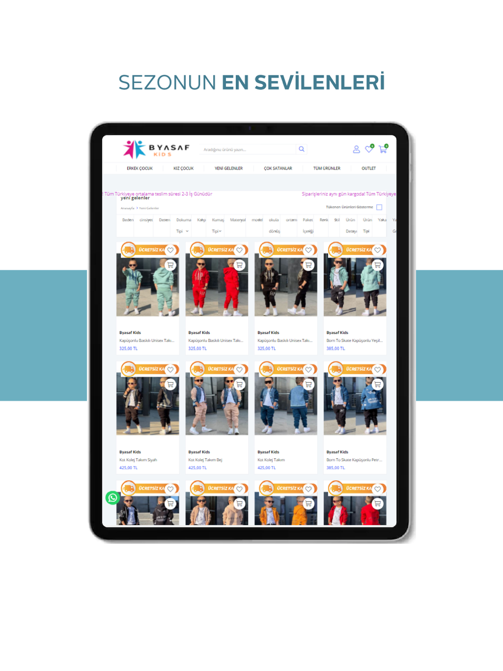 Üreticilerden aldığı ürünleri satan Byasafkids.com ürün seçebilme avantajı ile her sezon binlerce modeli siz müşterilerimizin beğenisine sunmaktadır.