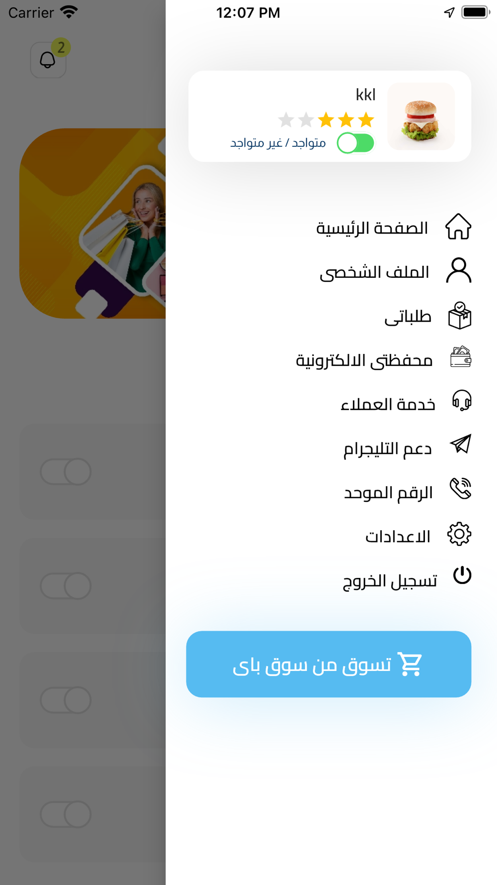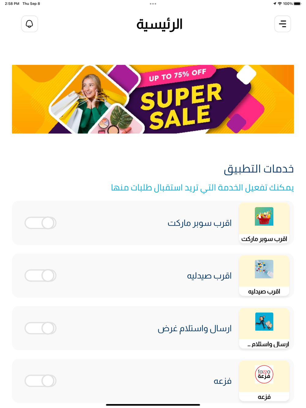 A mobile application to provide delivery service in an easy and fast way, where the customer can register with the application and browse the various categories of stores and determine his requests and then send the request and then follow up on the request, where the delivery agents in the system receive the request and one representative approves the request to start the journey of delivering the request from the store or store To the customer's site, the customer pays the value of the order in addition to the value of the delivery amount. The value of the commission on the delegates is calculated on the delivery amount, which is paid to the application management.