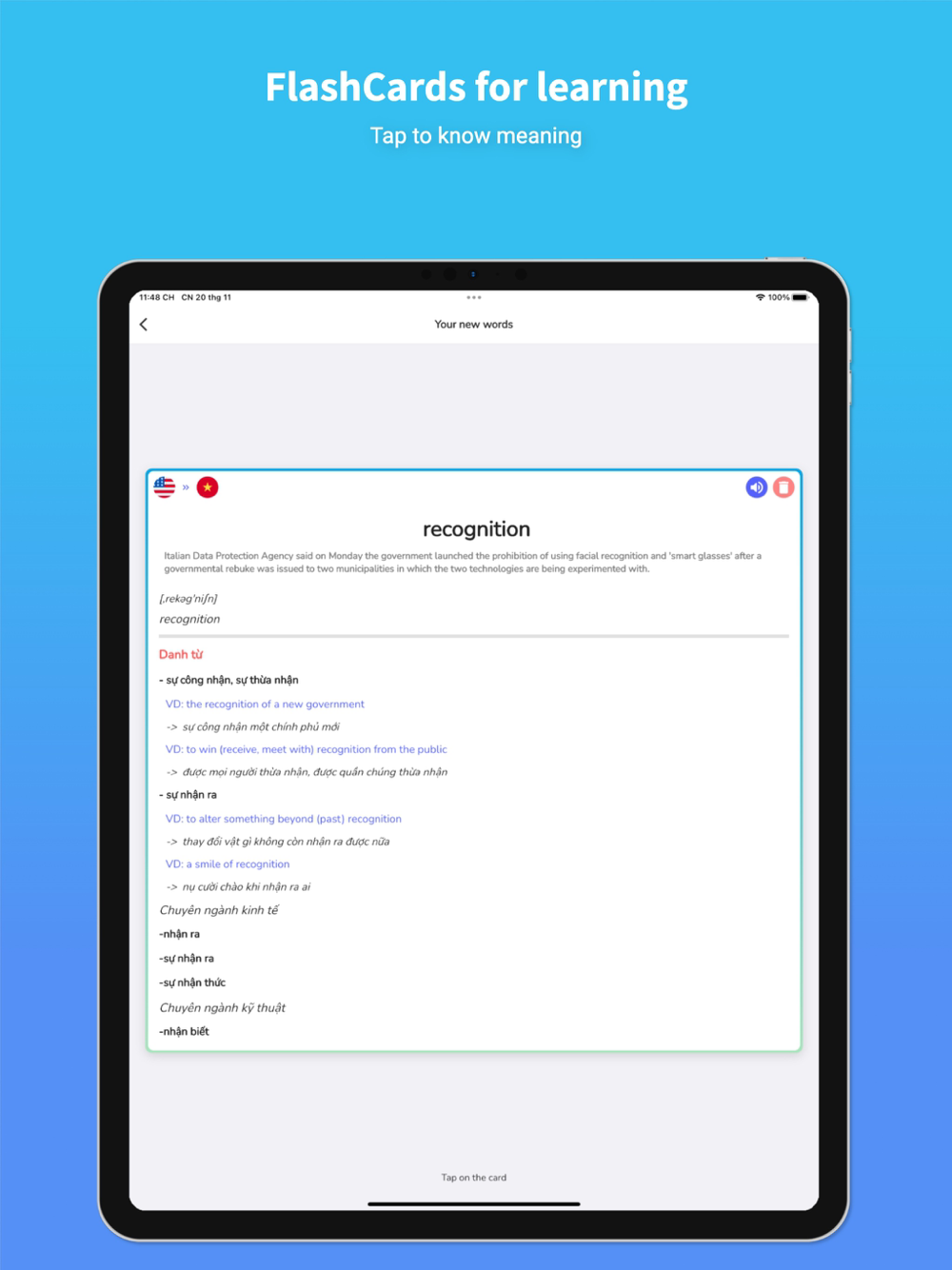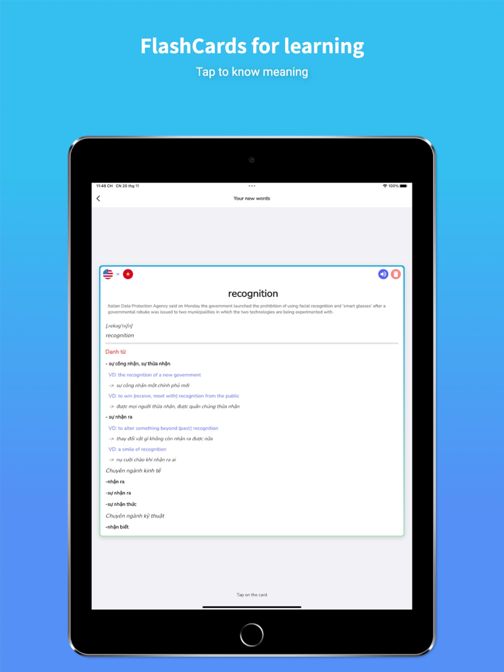 Improve Vietnamese Vocabulary by reading short stories from basic to advanced with english translation, reviewing new word flash cards.