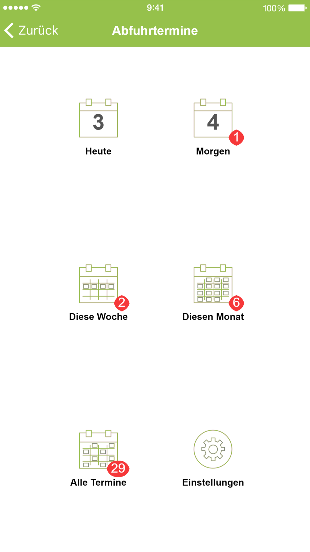 - Nach Abfallbehälter filtern (z. B. nur an die Abfuhr der Biotonne erinnern lassen)