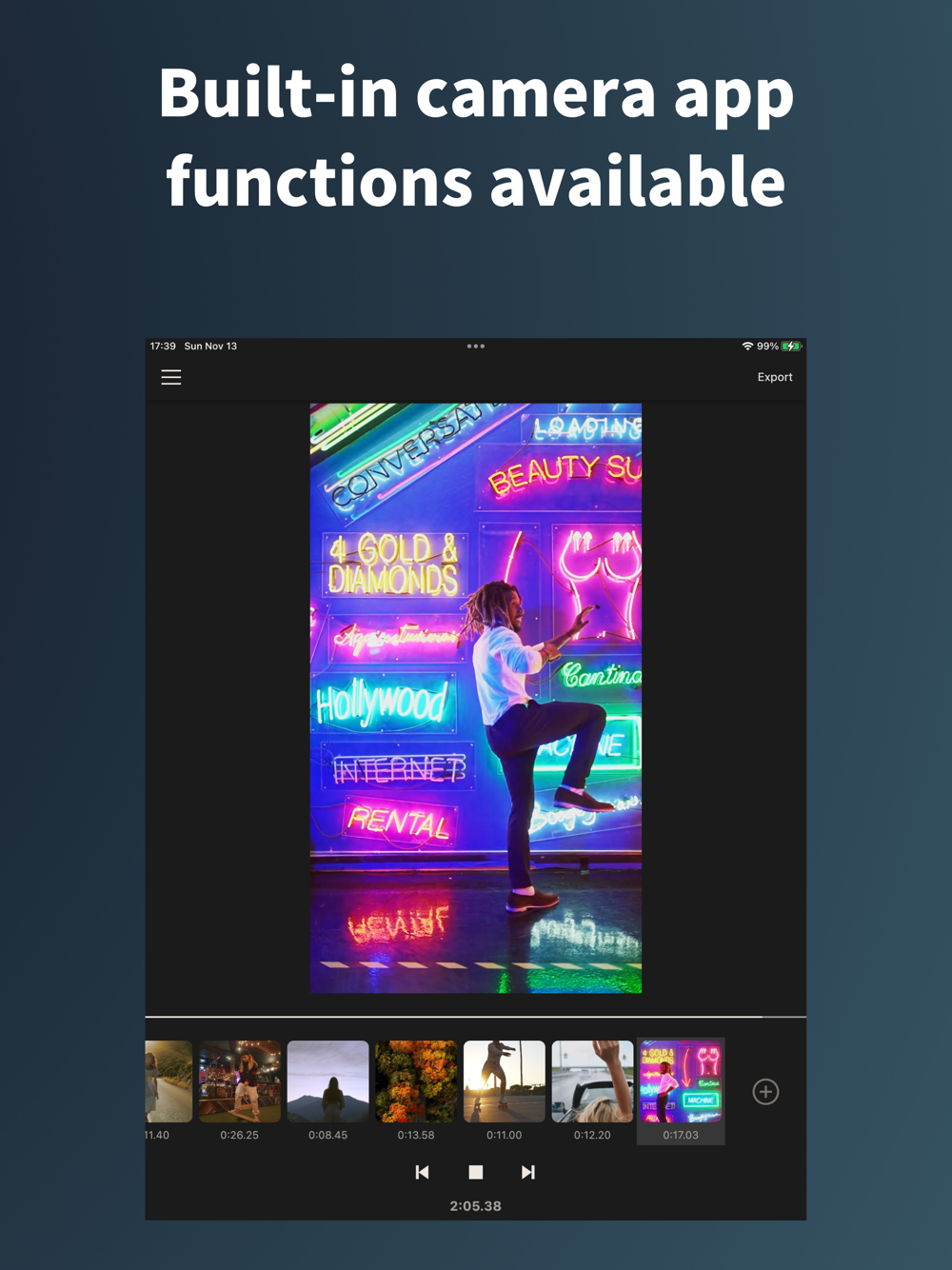 The app allows you to connect clips without the need for editing, making it ideal for shooting TikTok and Youtube videos, documenting your travels and daily life.