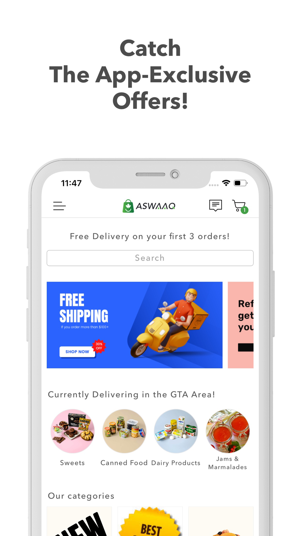 Aswaaq is an entirely new online grocery shopping experience. The key difference is that we do not require you to come to the grocery store. Instead, we come to you with goods according to your shopping list! You have your local Aswaaq store in Mississauga.