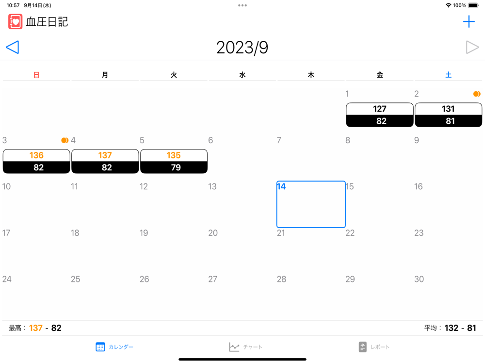 ※入力値はヘルスケアに記録され、ヘルスケアから読み出した記録をカレンダー・チャート・レポートとして表示します。
