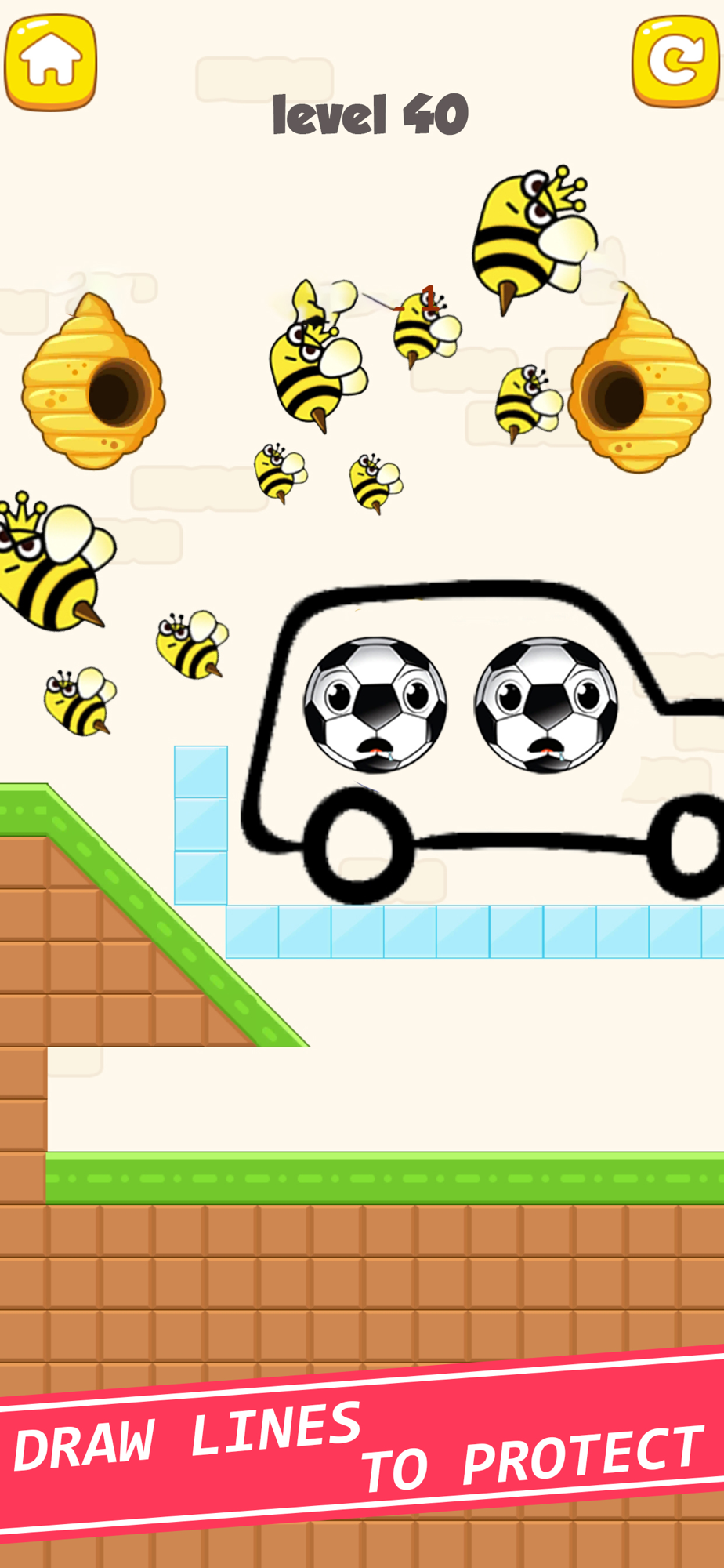 Everyone knows that bees never stop attacking on their enemies and they will find a way to sting this ball. Let's draw a lines wall around this ball that protect our ball. Challenge yourself and see how many survival levels you can complete to save the soccer ball. You will enjoy puzzle drawing game in this newest draw lines mind game with hundreds of levels.
