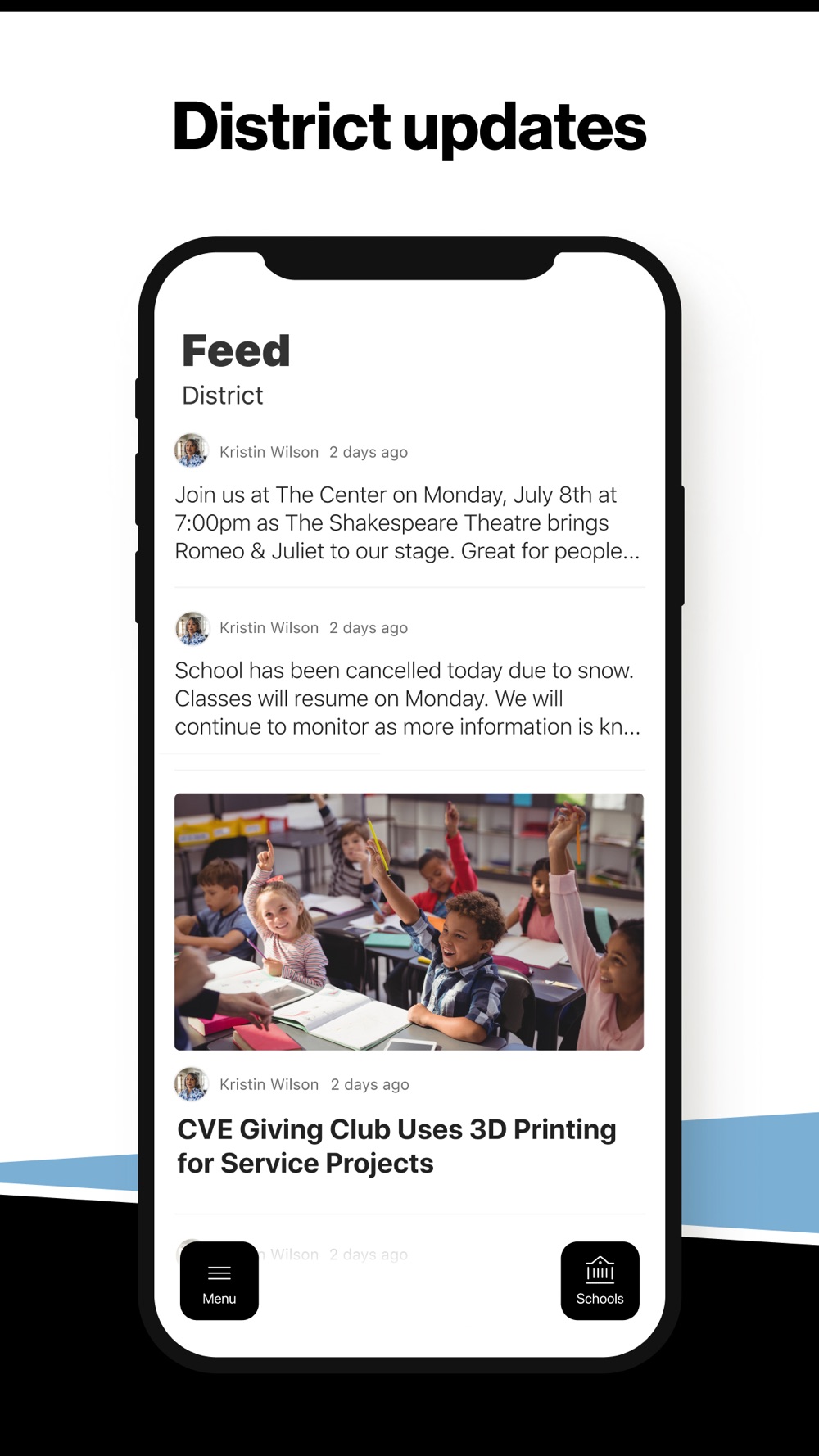 In the Live Feed is where you’ll find updates from the administration about what’s going on in the district right now. Whether that’s celebrating a student’s success, or reminding you about an upcoming deadline.