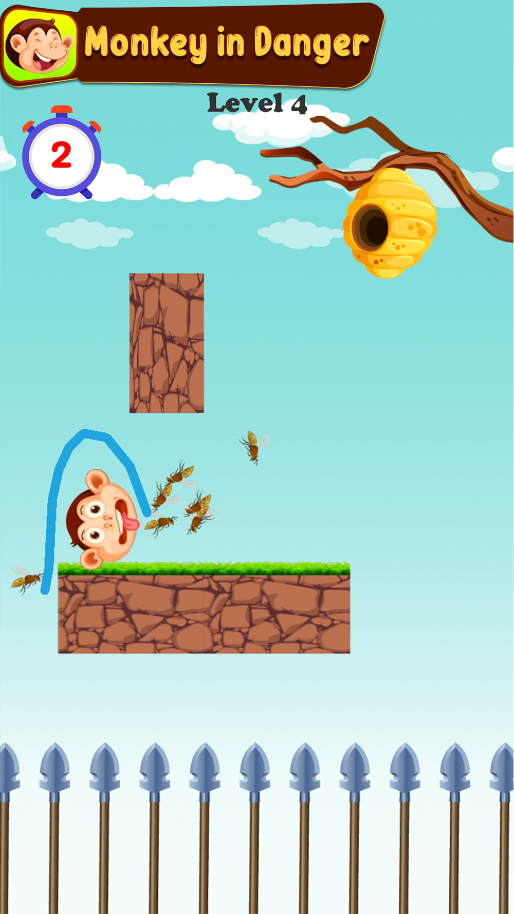 - Touch the screen and draw a line to save animals from the bees.