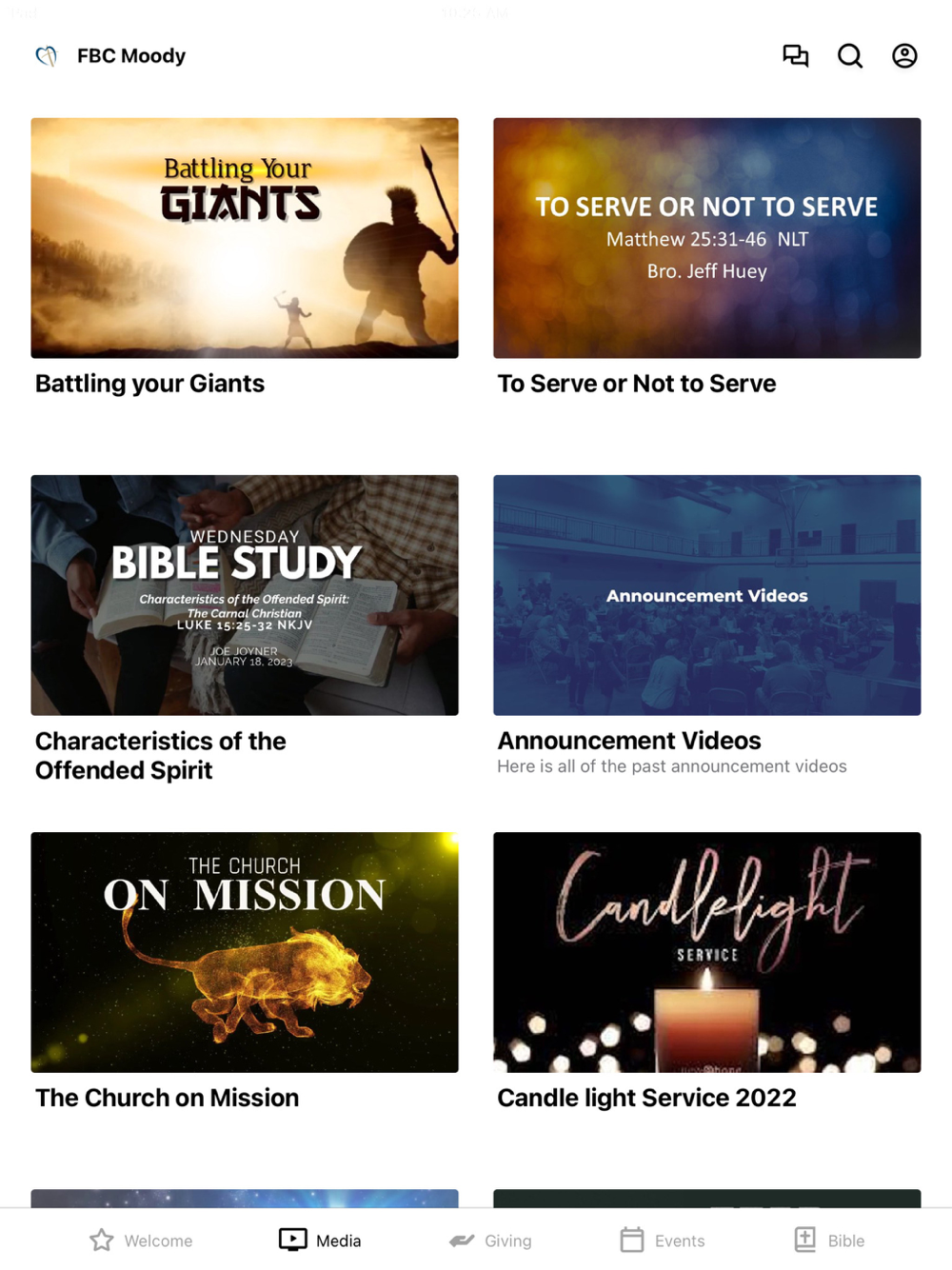 This is the Church app for First Baptist Church of Moody in Moody AL here you can watch current and past sermons, check-in for Sunday School, view the Church Bulletin, view and register for events, and tithe right from your phone.