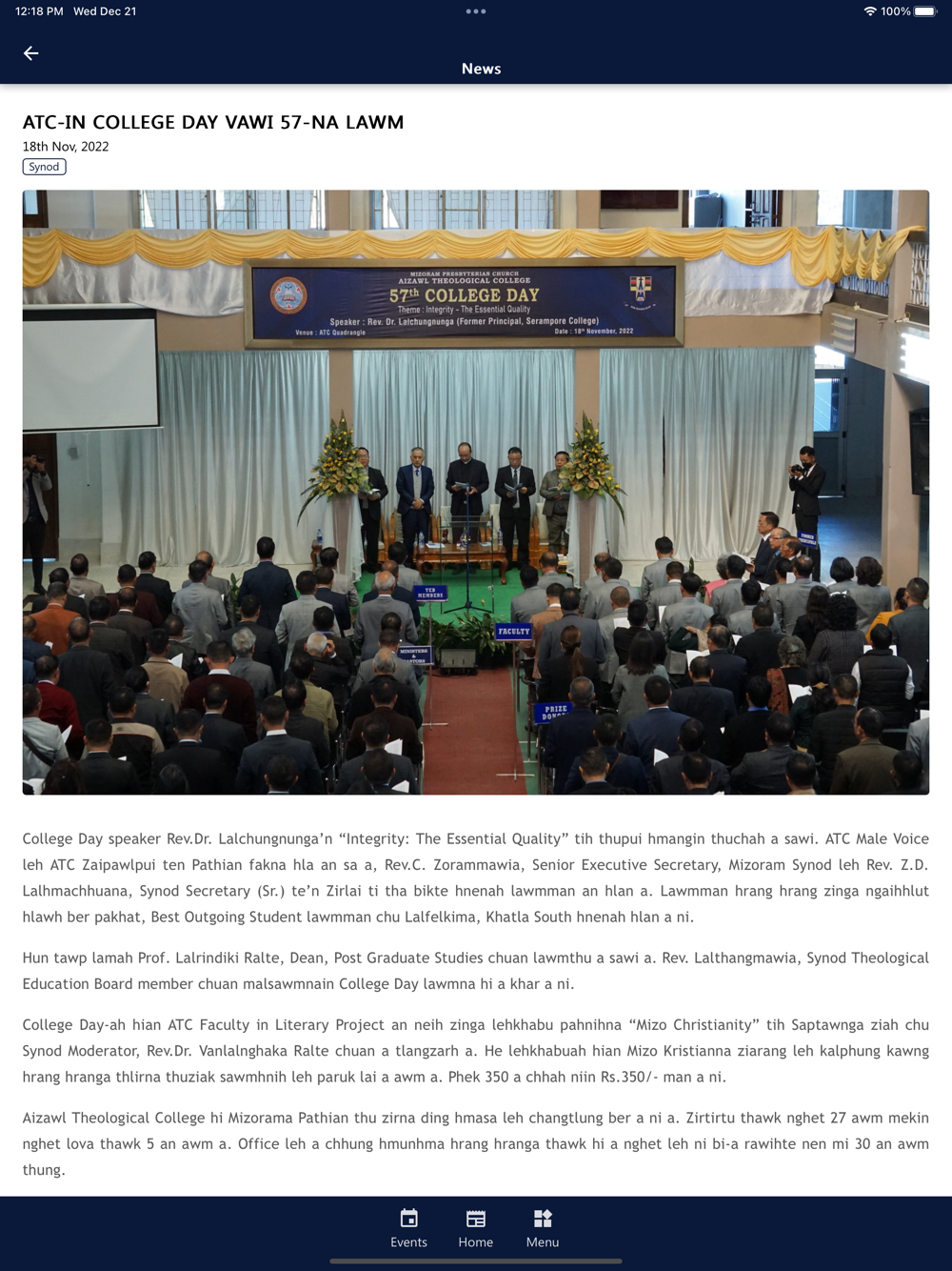 Central Kristian Ṭhalai Pawl is a fellowship under Mizoram Synod, Presbyterian Church of India. The CKṬP app is a platform that provides news, content and resources focused on the works, administrations, and members of its fellowship, as well as the cultural contexts in which they live out their faith.