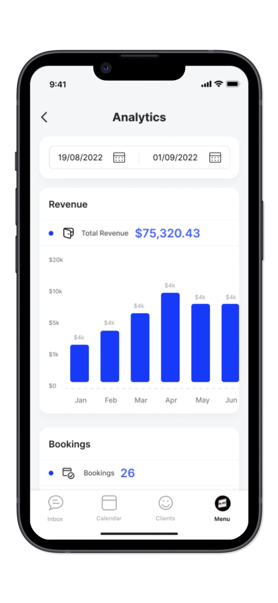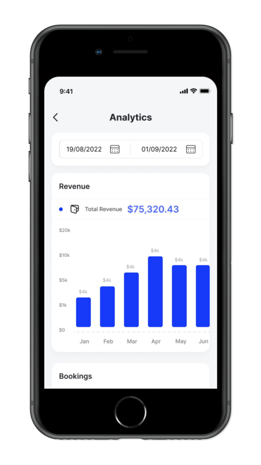 - See a visual overview of your business progress, estimated earnings, bookings and response time.