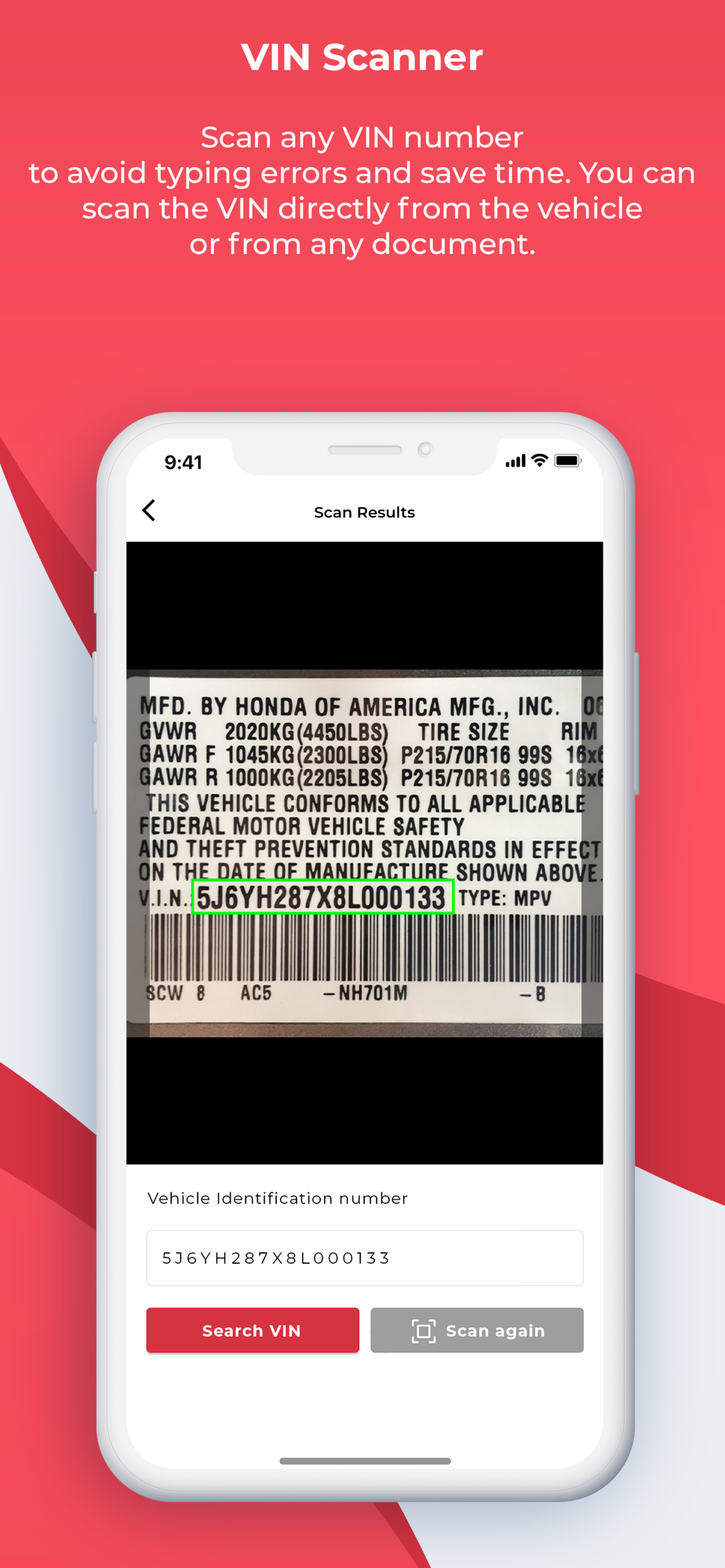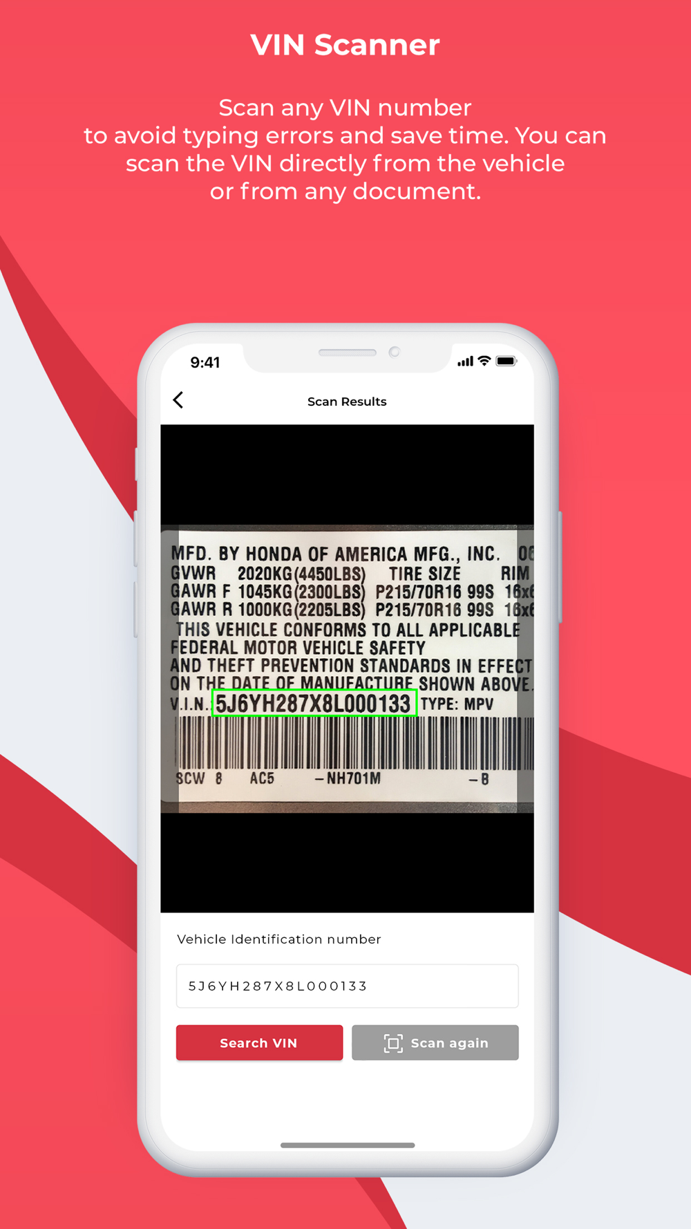 • Scan VIN or license plates directly from the vehicle or its documents.