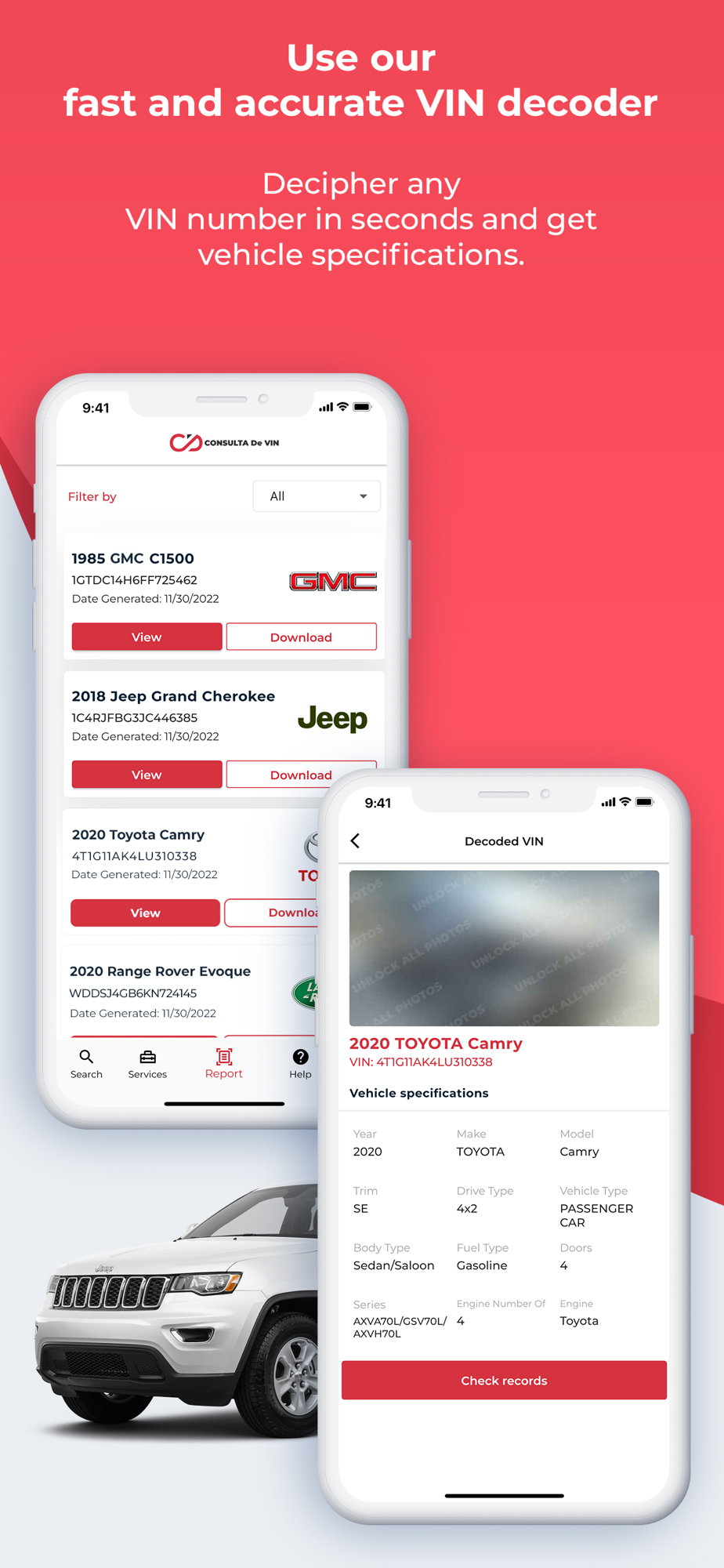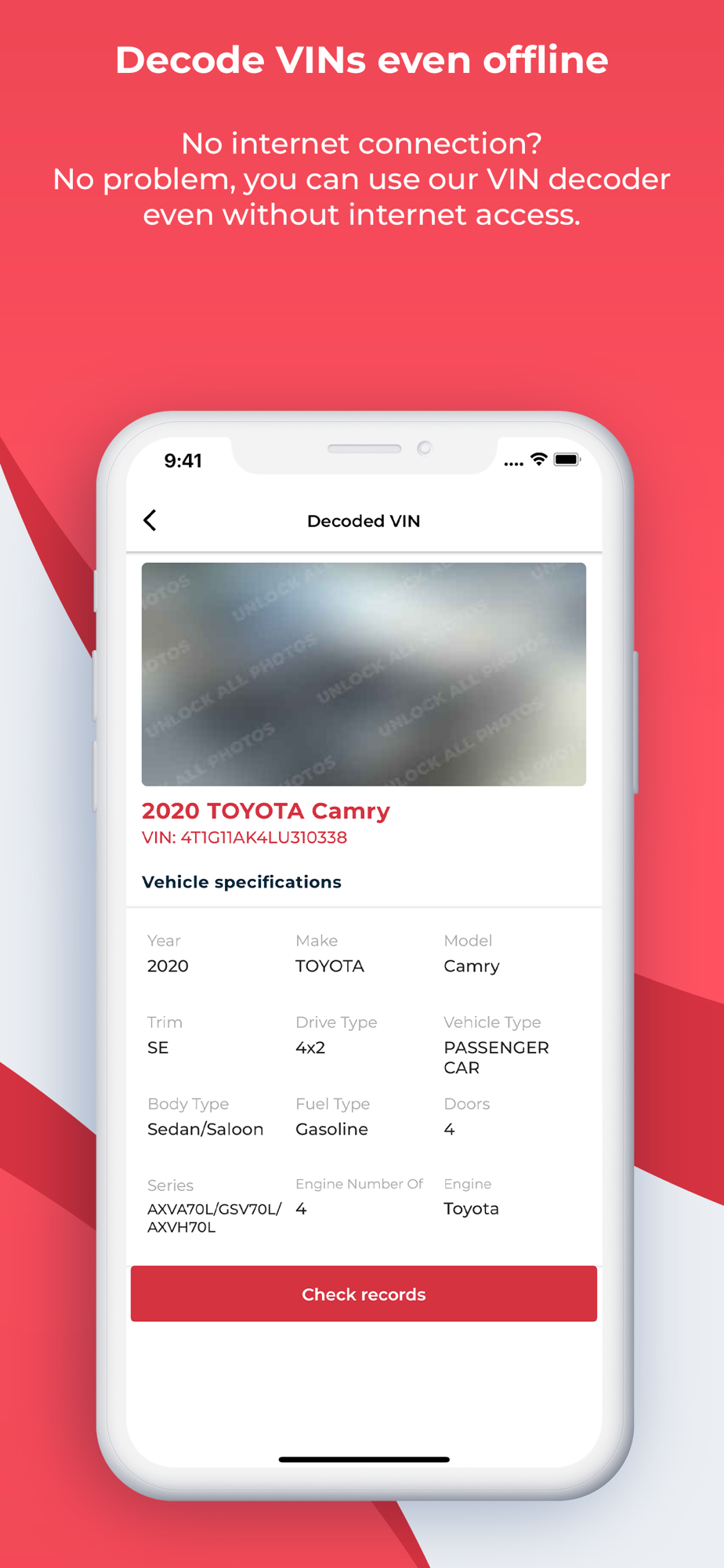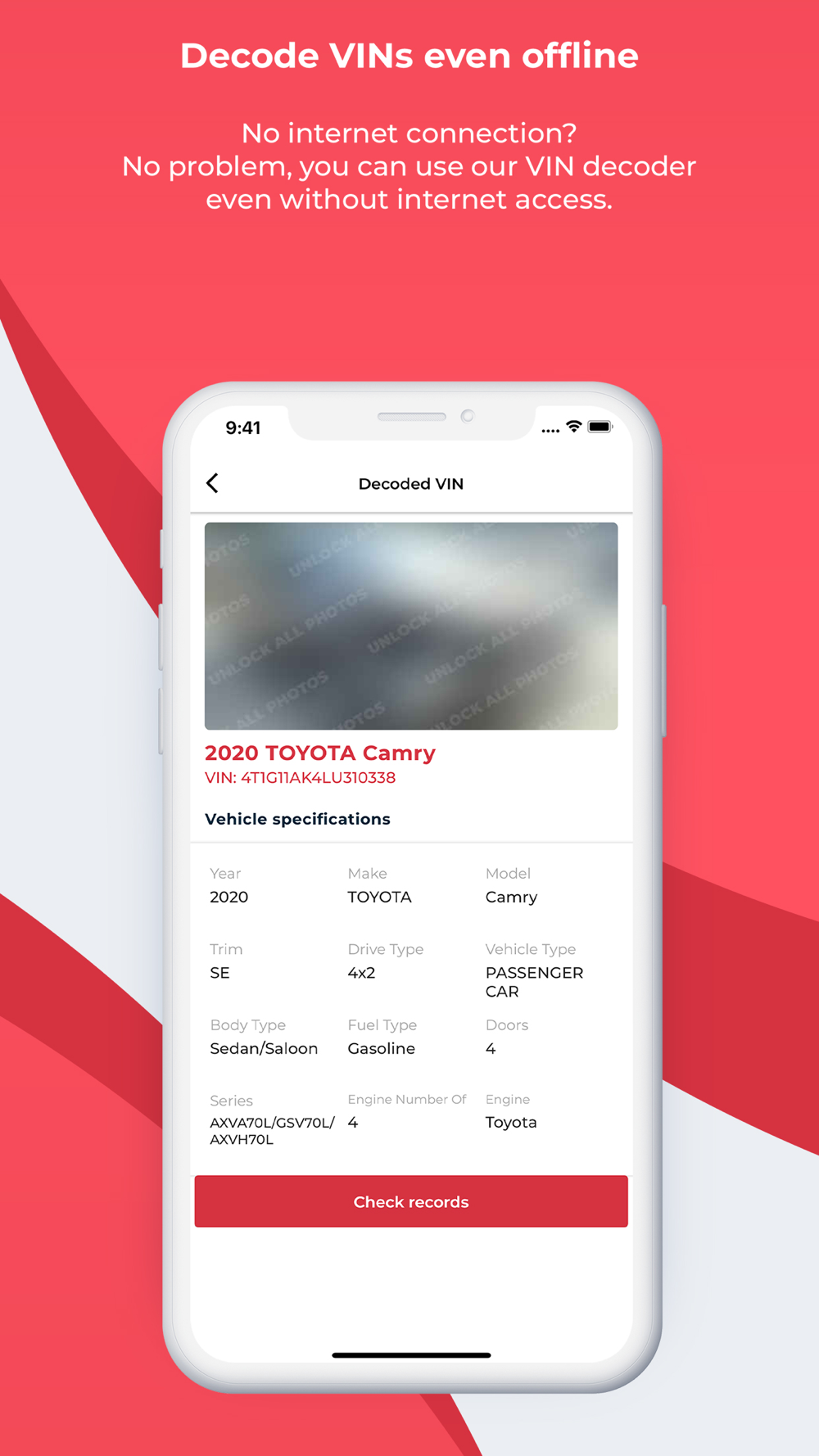 The fastest, easiest and most accurate way to get information about any vehicle from the VIN number. Generate the history report for any used vehicle using our VIN decoder. Includes free access to vehicle specifications. Run a VIN Check Now! With your checkup you can quickly access detailed information, including accident history, mileage history, theft records, auction and photo history, loan and lien records, damages, maintenance history, open withdrawals, and much more. We offer the best alternative to Carfax, including much more data in our reports and at a more affordable price.