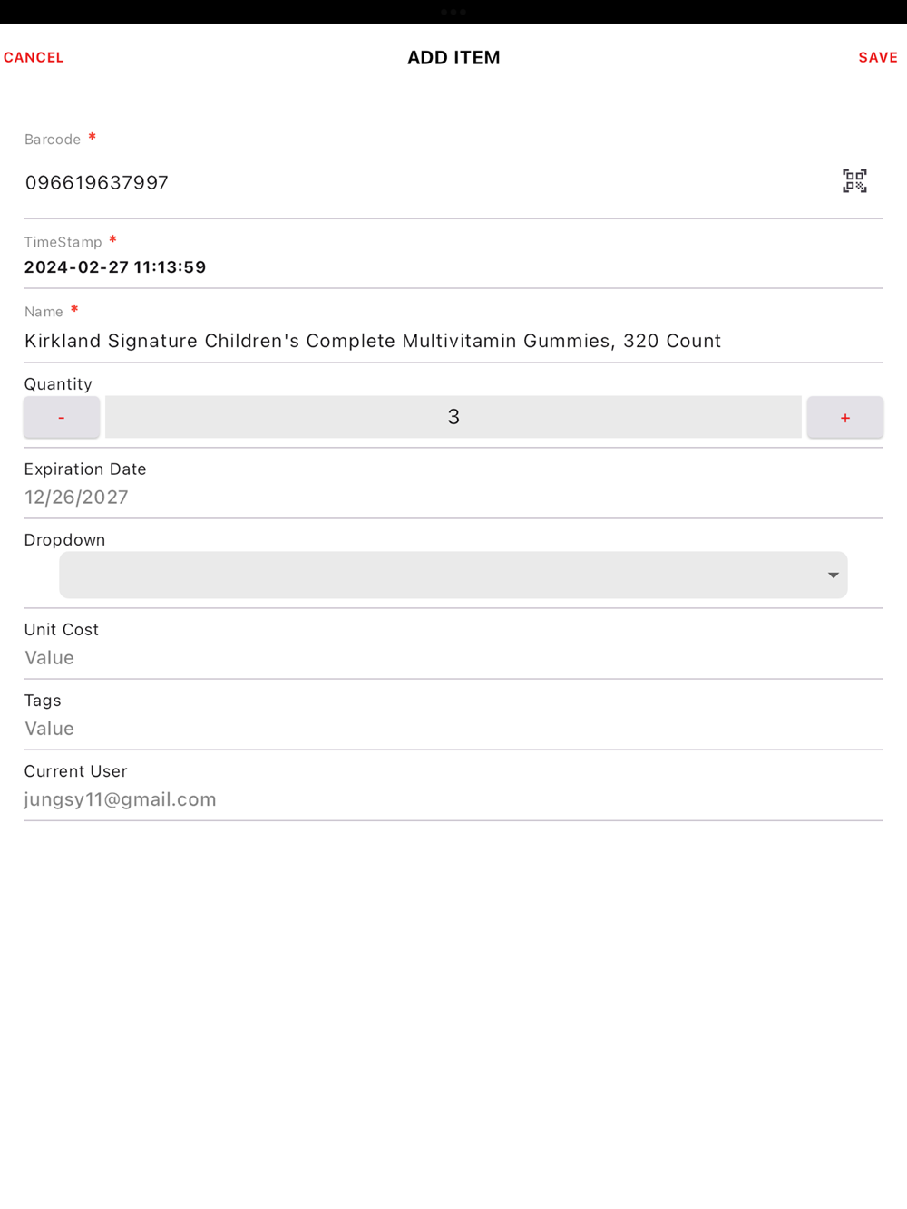 2. Add items by scanning barcodes (auto-lookup) or importing from Excel/Google Sheets.