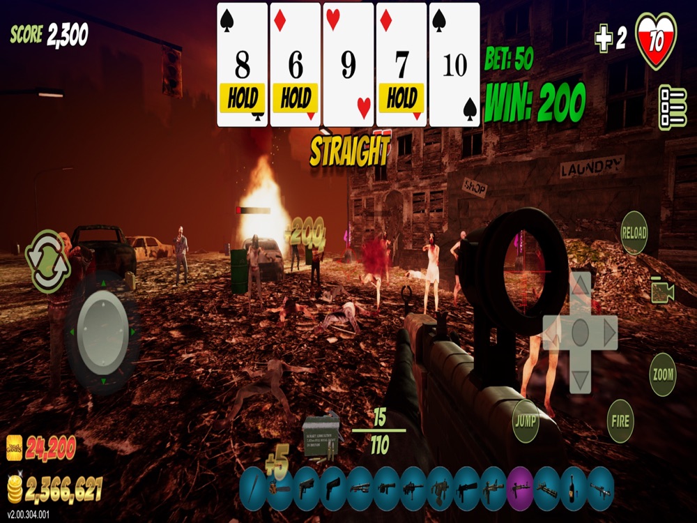 Take Video Poker to the next level with the first ever Skill Poker game: Zombie Skill Poker! Use your FPS skills to blast zombies and deal the cards to keep the action going and win big!