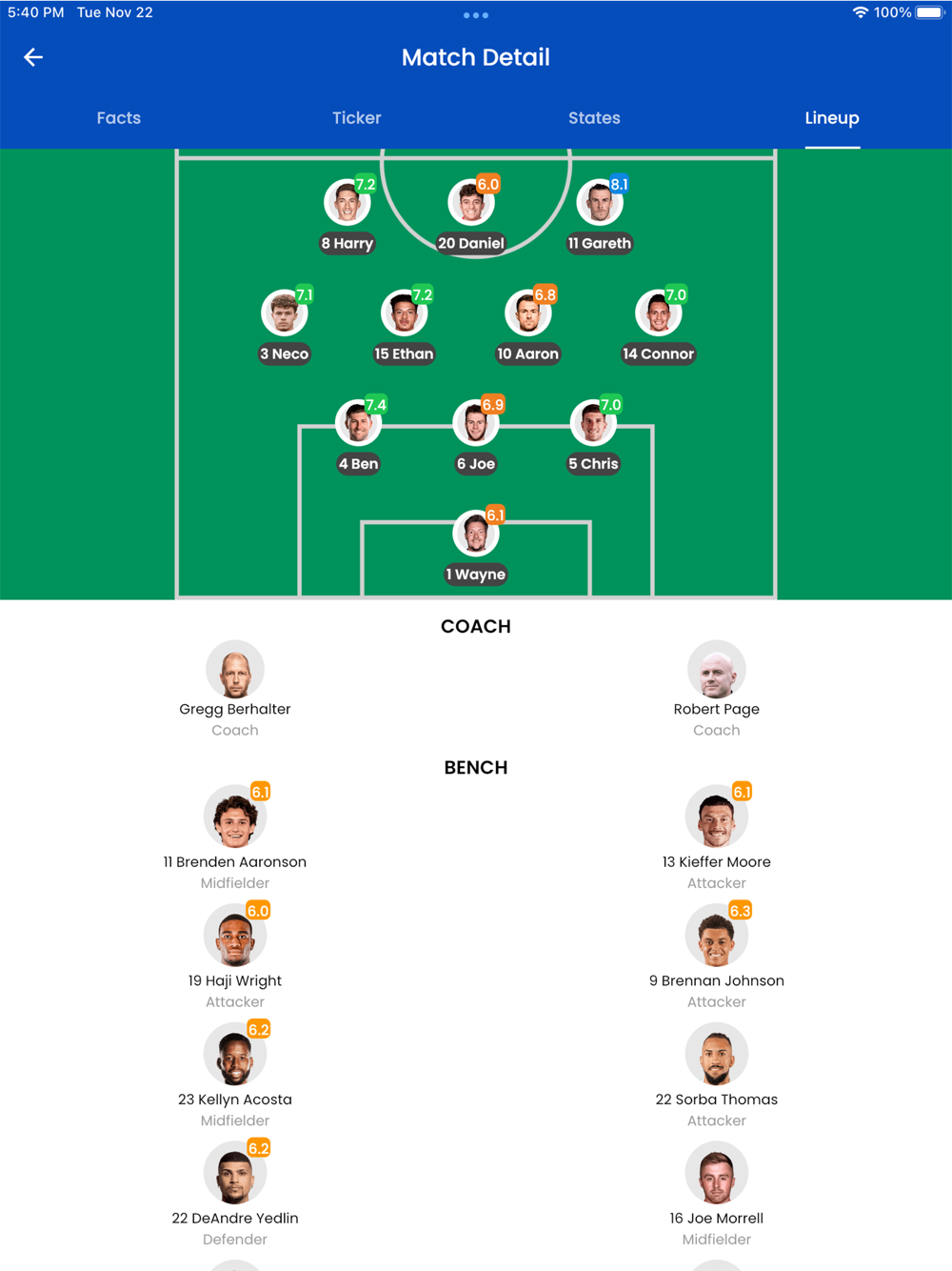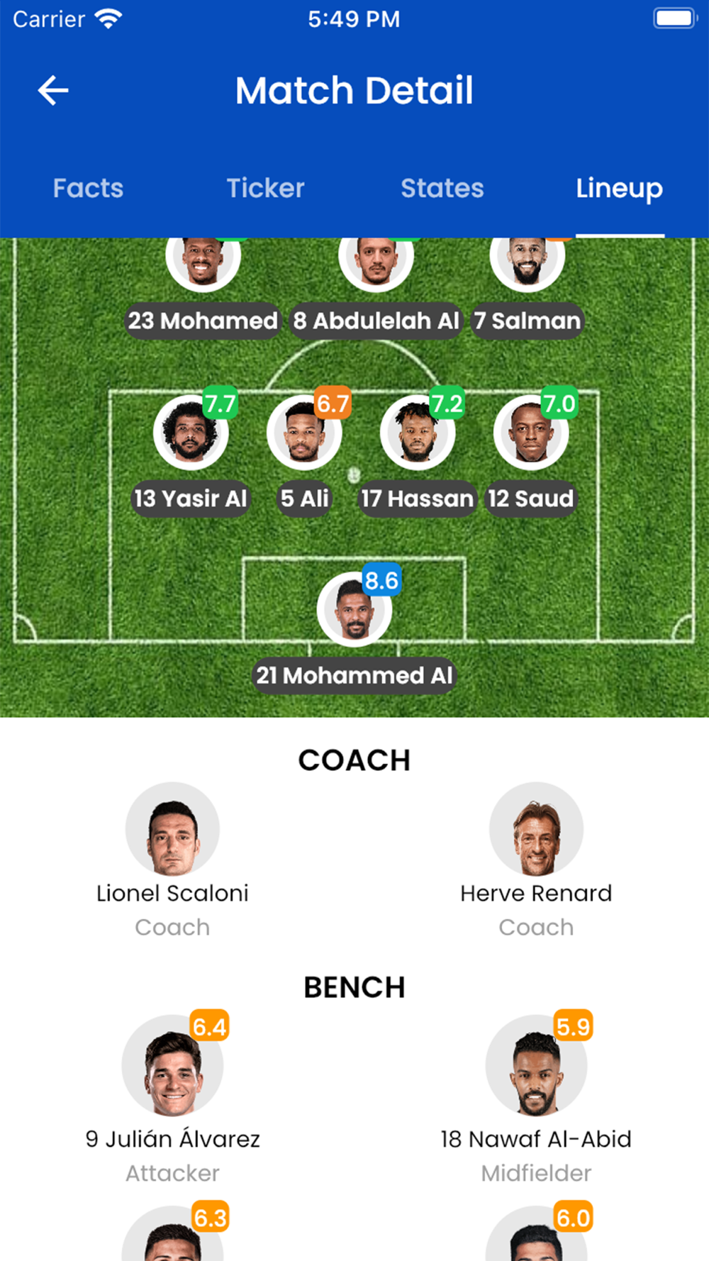 Live Football brings you live Sports score via your mobile INTERNET for free to watch matches, watch live league detail for free on your mobile phone or tablet, watch live Football score, live soccer score , more team detail and player detail.