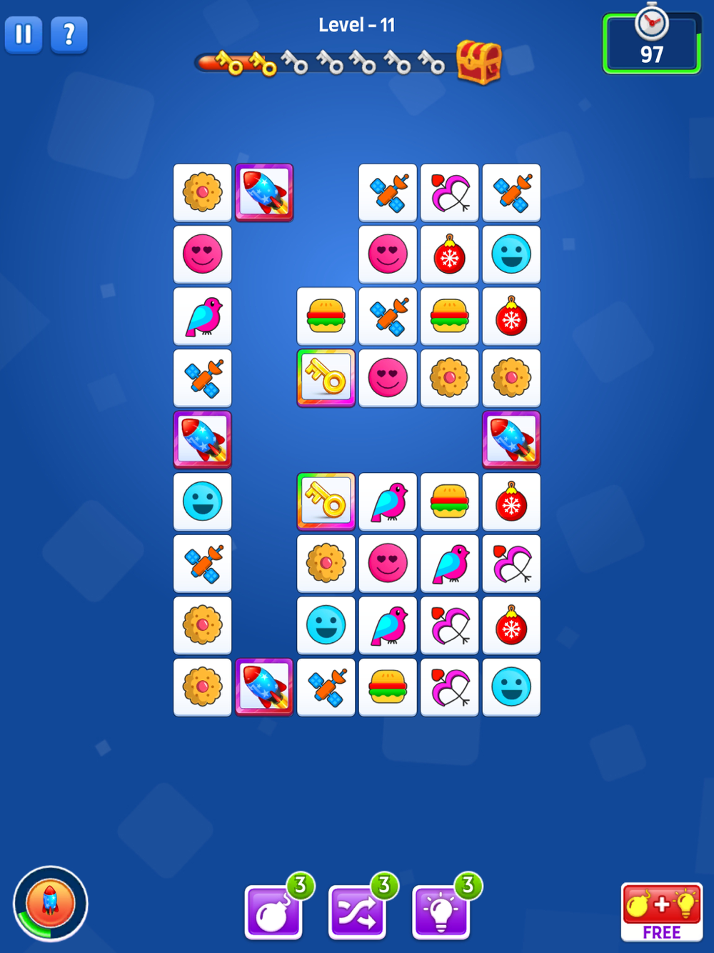 - Hint feature helps you when you are stuck in the Onnect matching game.