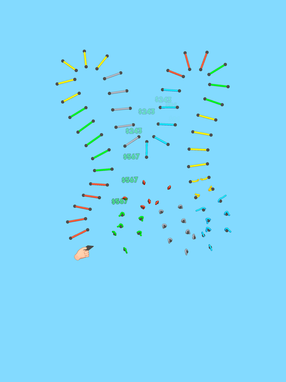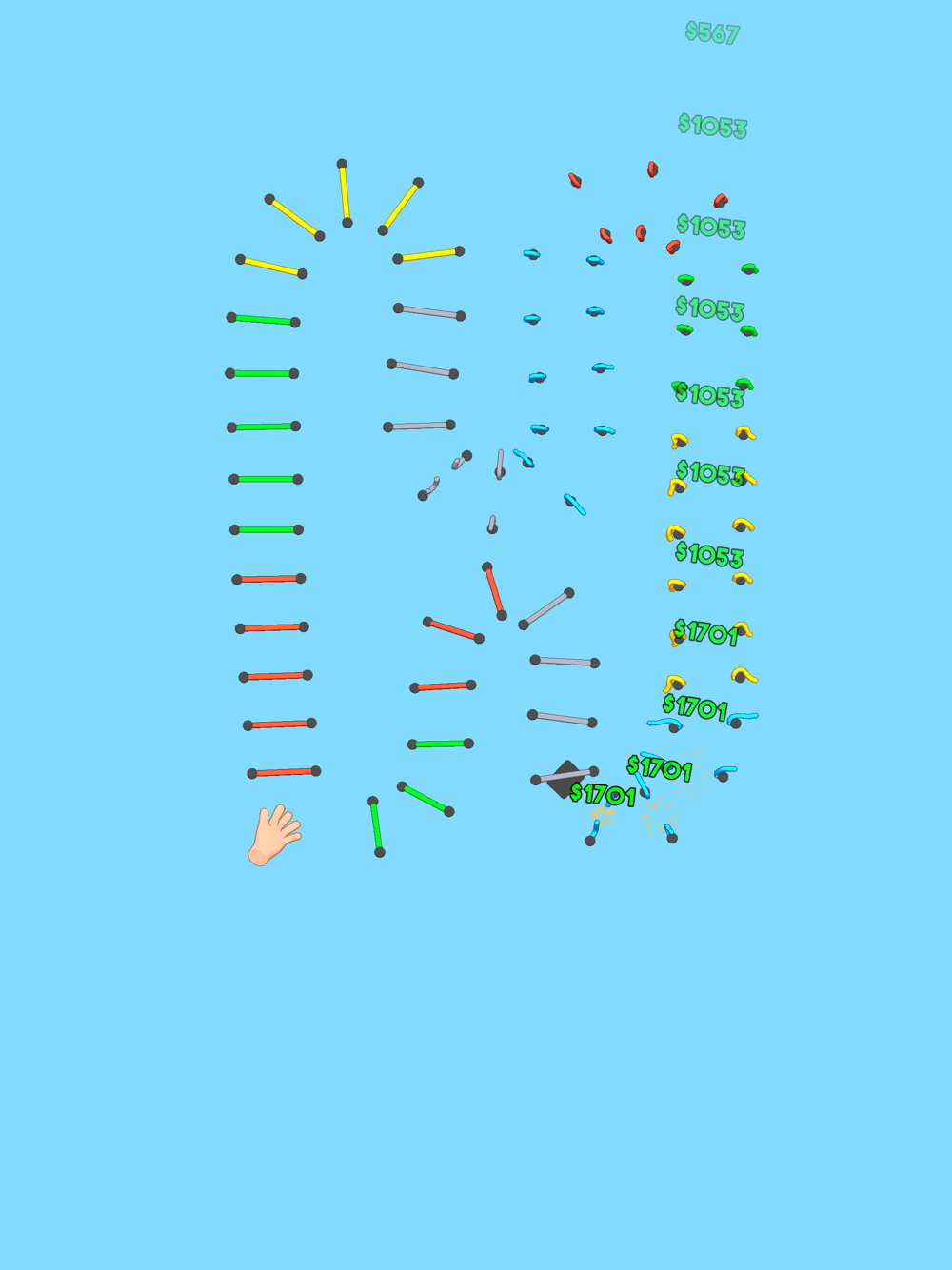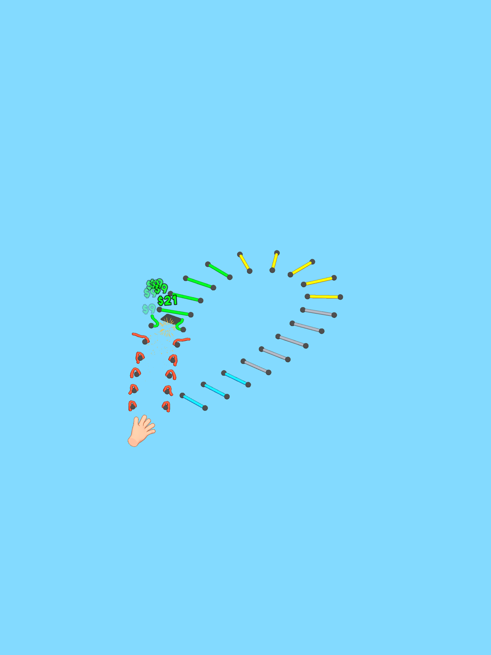 Buy more ropes and cut them by cards to gain more income! Merge the ropes and get better ropes to cut!