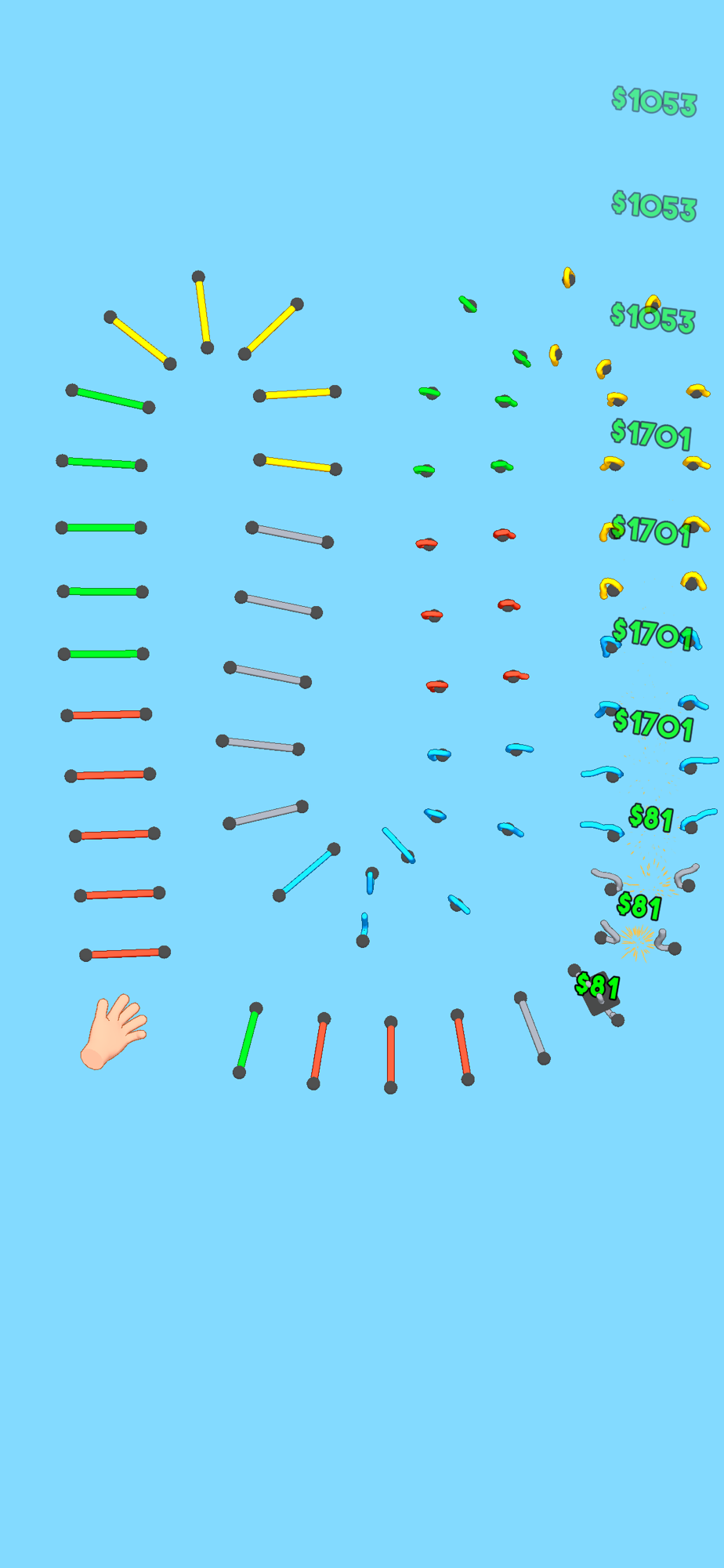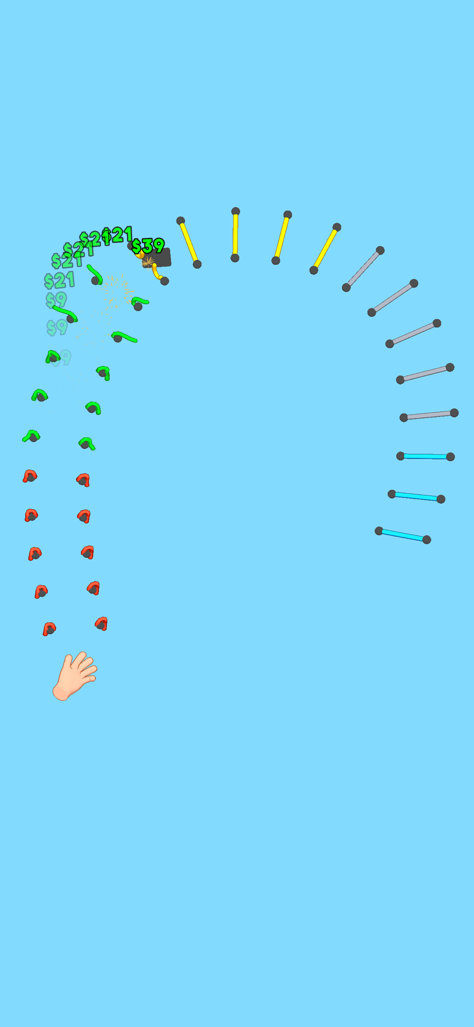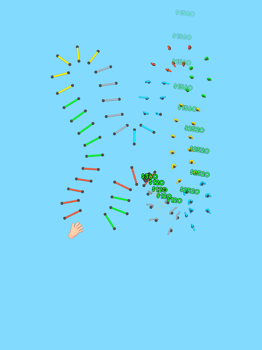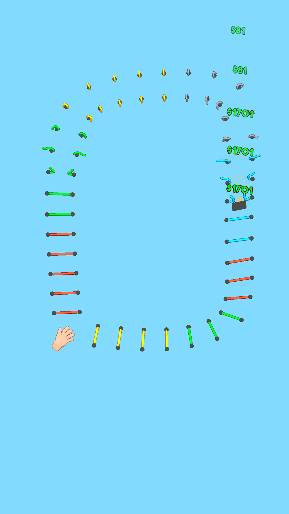 Buy more ropes and cut them by cards to gain more income! Merge the ropes and get better ropes to cut!