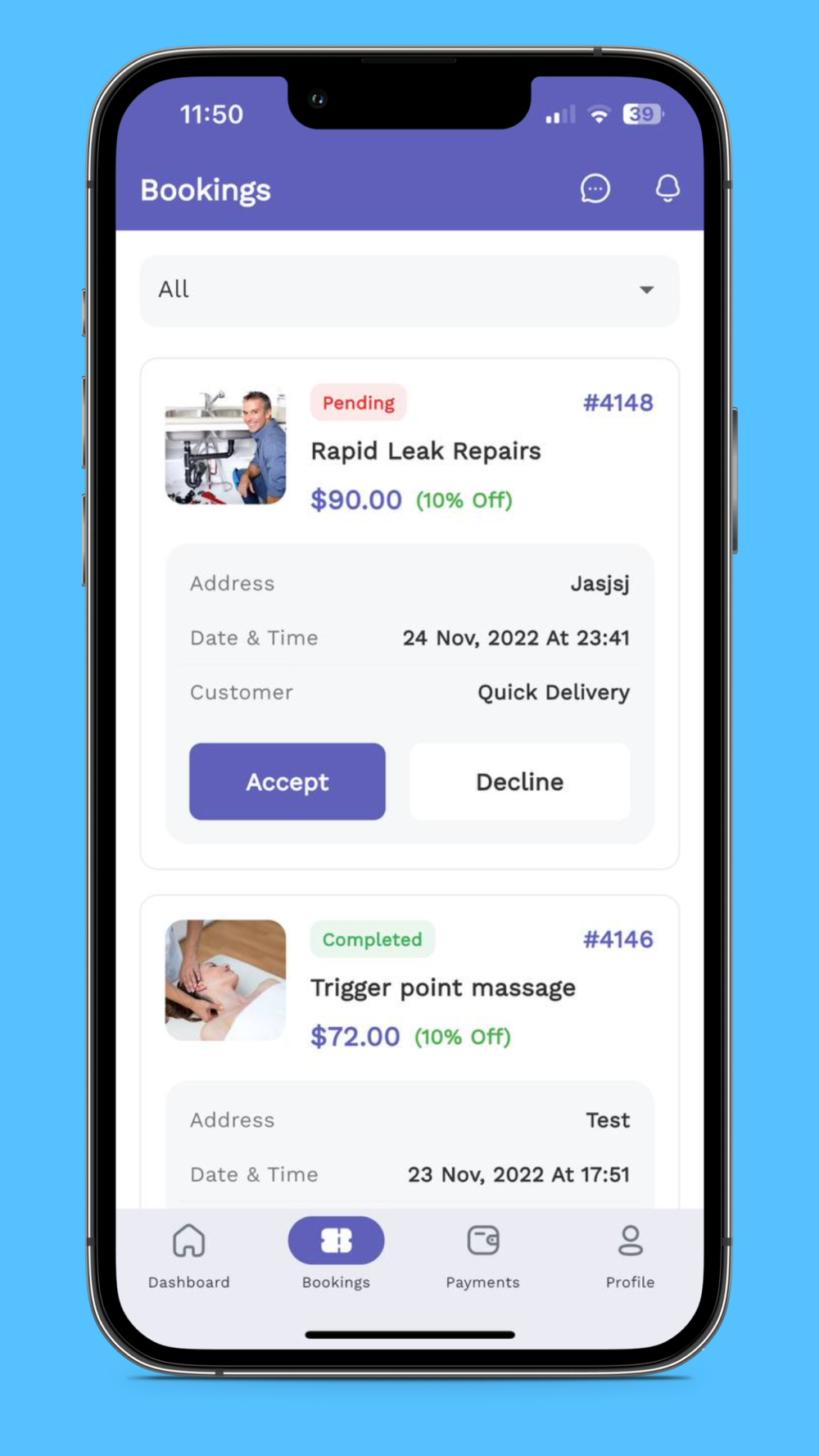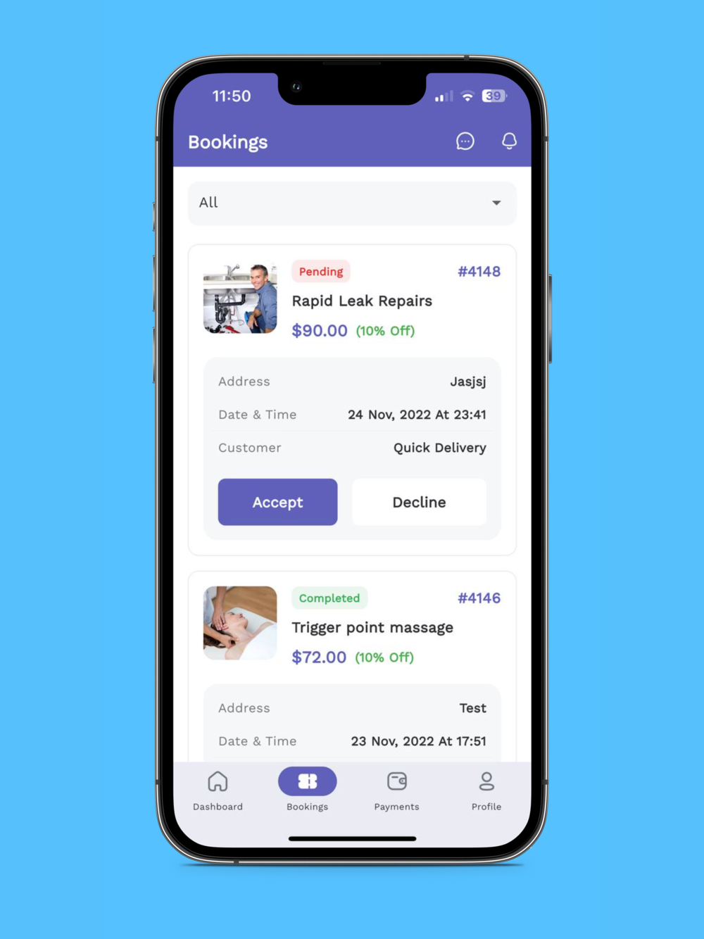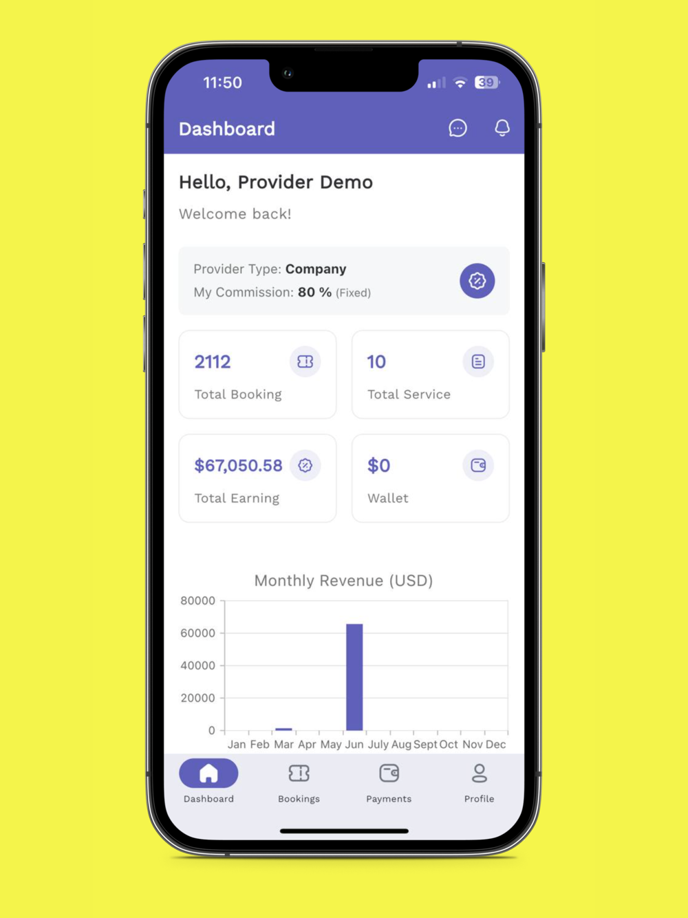 The provider in this Booking Service app can assign the booking to Handyman and accelerate the service. This Booking Service system app comes with a Laravel PHP admin panel to have a meaningful insight from the admin dashboard and statistics. Assign multi-roles and permissions like Admin, Service Provider, Handyman, and customers using this app. Additionally, this Booking Service app supports Multiple Languages/ RTL support. This customizable, ready-to-use app comes with light as well as dark theme support and push notifications to engage with clients in a more interactive way.