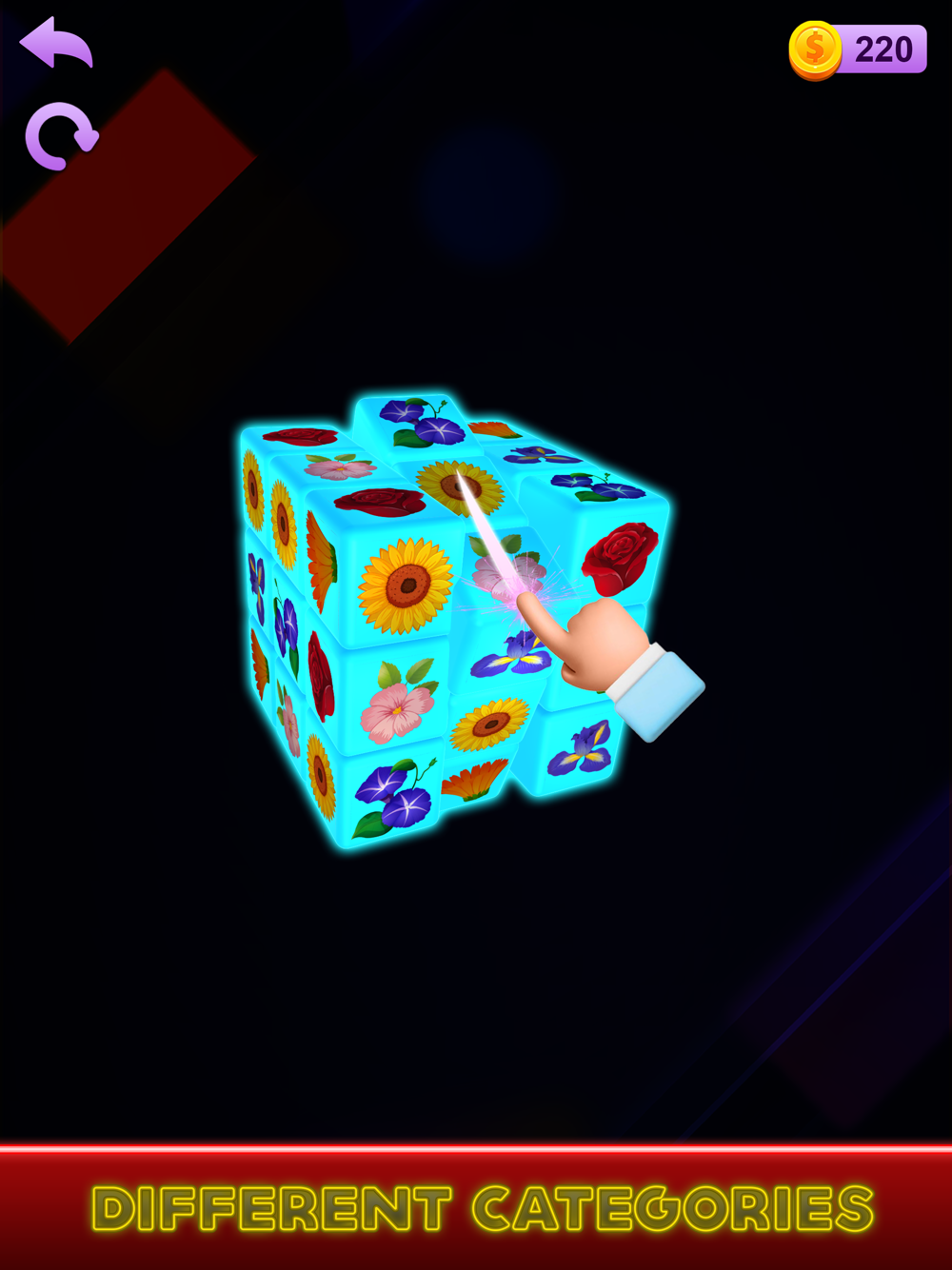 Solve the rubiks cube and step to the cube master! Cube Find: Match Master 3D is a stylish triple match 3D puzzle game. All tiles are grouped to a rubiks cube, and you can swipe to rotate the cube by 360 degrees. Tap and match triple tiles to progress to the next cube master 3D merge puzzle level!