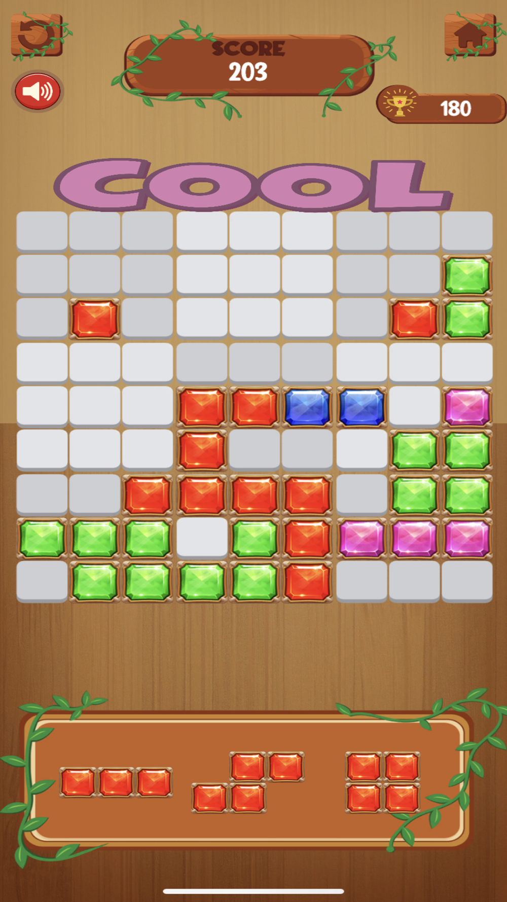 Your mission is to think carefully and fill the empty space using shapes, to complete lines or squares . and trying to reach the highest score, the colors of the blocks will change when the player reached a certain score. there are 5 different colors. the player loses when there is no compatibility between shapes and the grid (there is no place for the shapes).