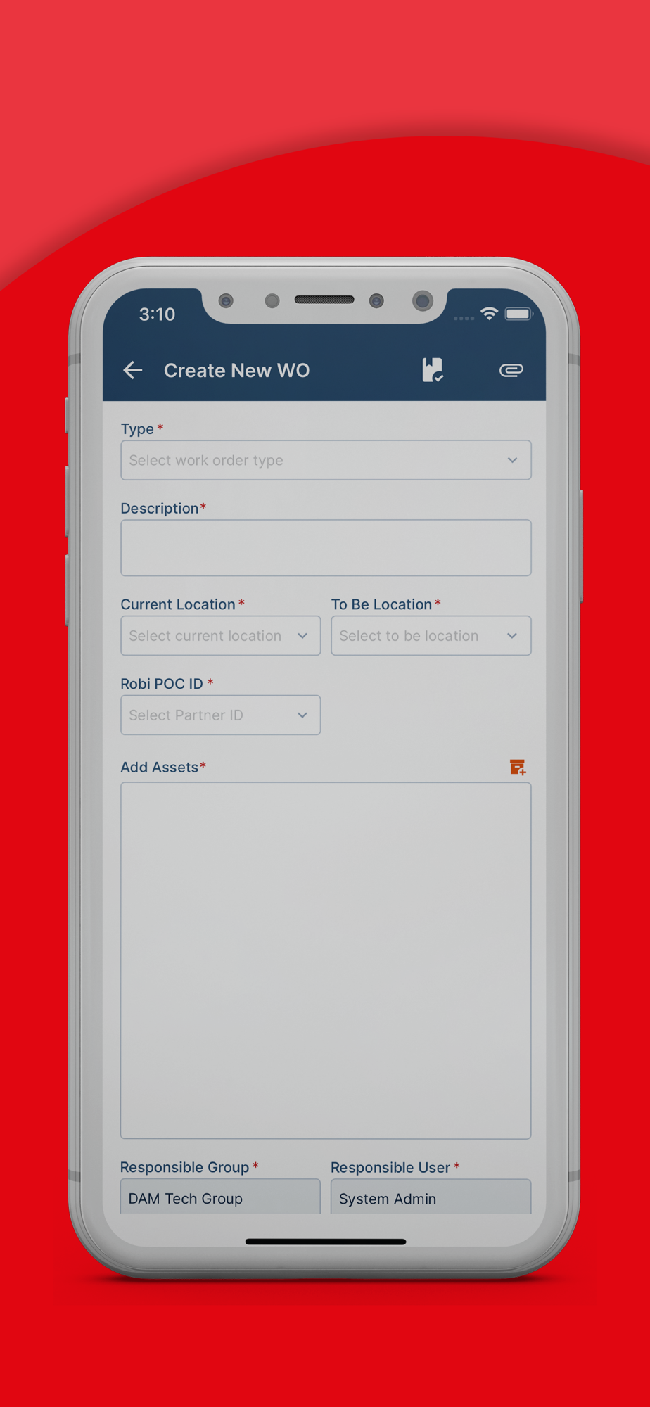 This app allows physical asset moving to the different site location and warehouse with an approval process and the changes are updates in the ERP system. You can create a work order by yourself and complete it. It also helps to onboard or update assets. You can see asset location from the app.