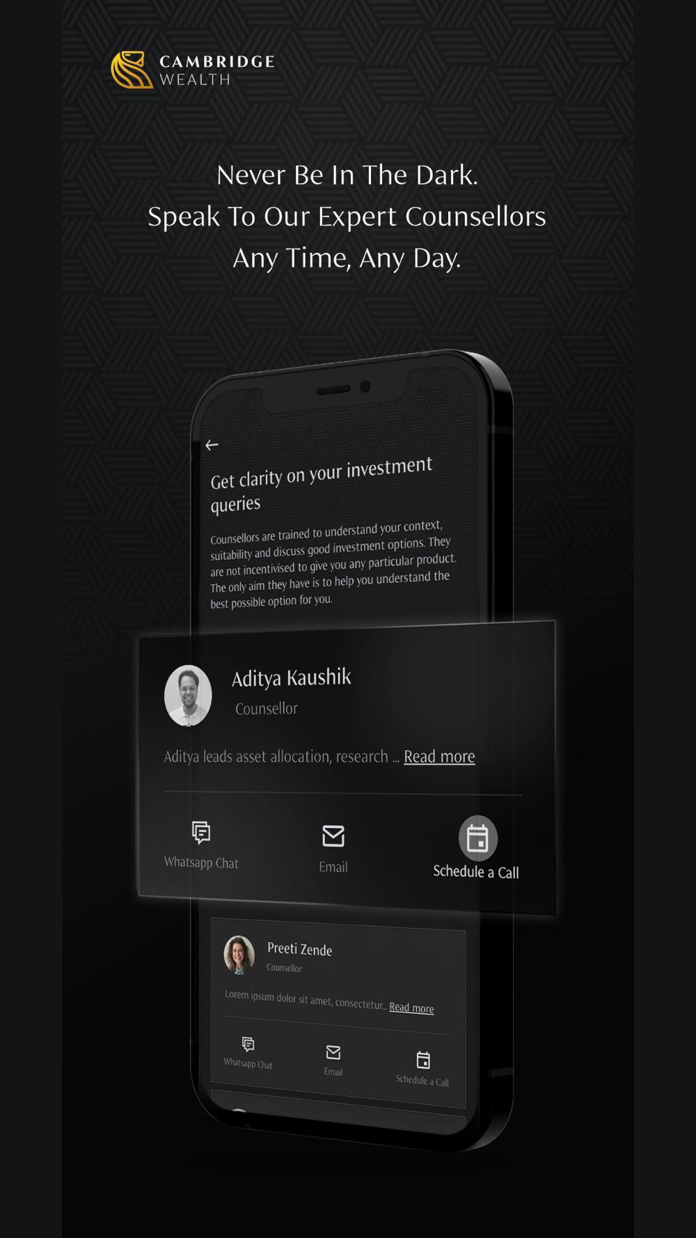 Cambridge Wealth brings not only the ease of tracking and managing your portfolio all at one place, but also give you real time insights and support on your portfolio, whenever you need it. Our expert councellors have more than 2 decades of experience in managing wealth for some of the most prestigious investors around the globe.Recognising the need for a Family Management Platform in India, our synchronised investment, legal and fiduciary recommendations, are tailored to meet your specific needs.