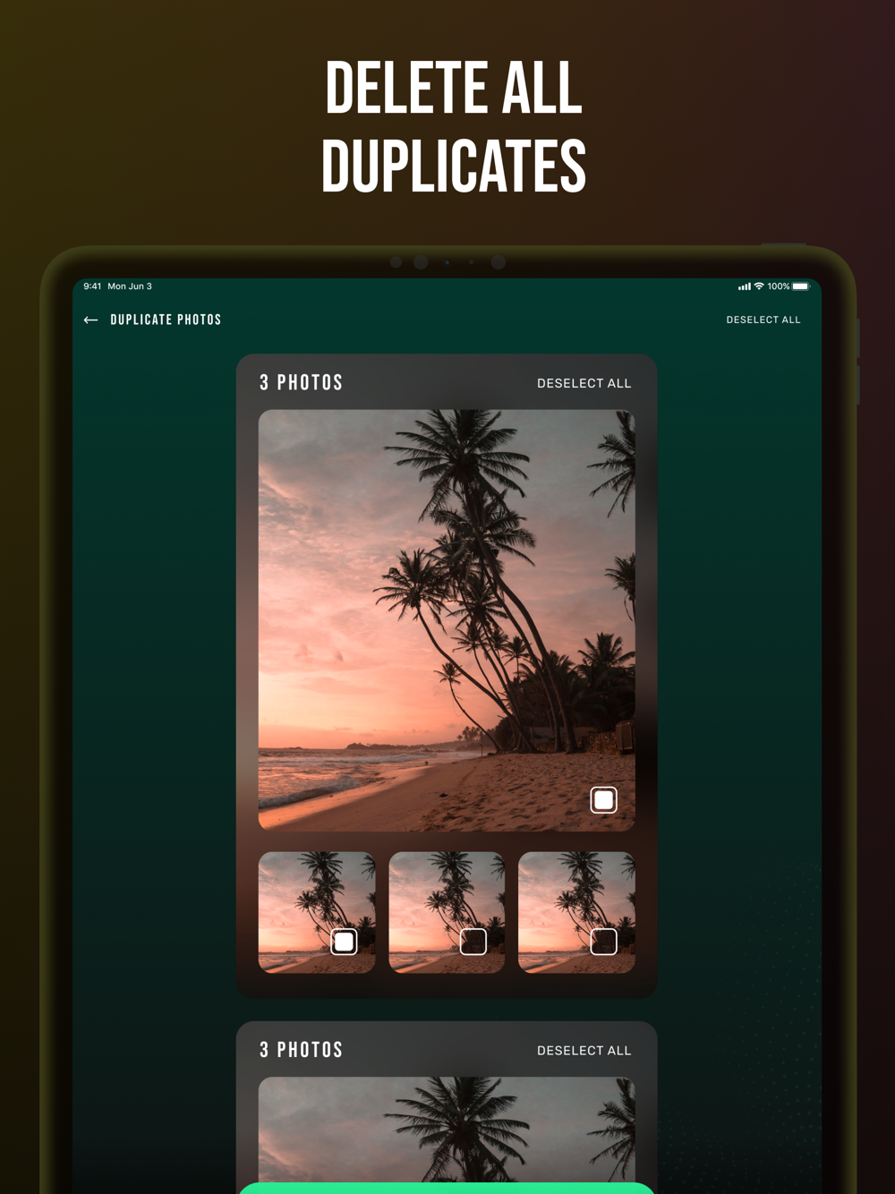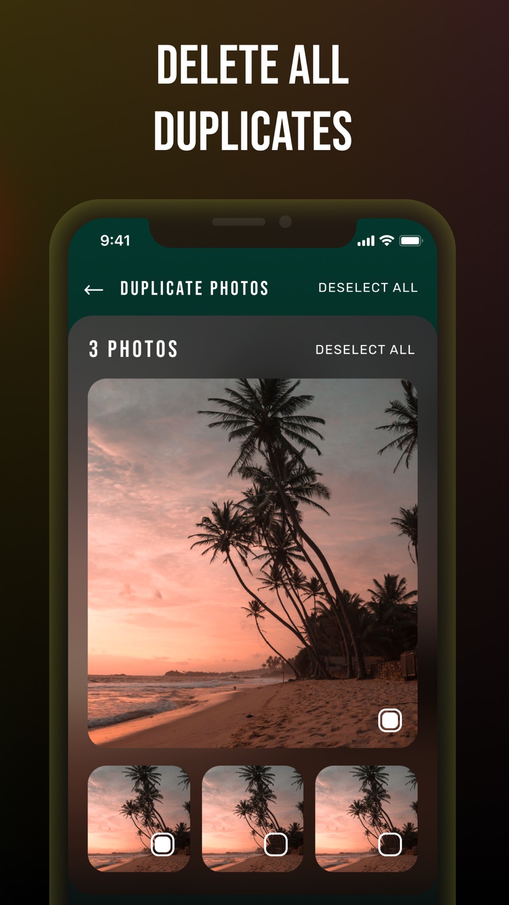 - Save up to 40% of the photo storage! Our engine will find each and every similar photo. All you'll have to do is tap Delete.