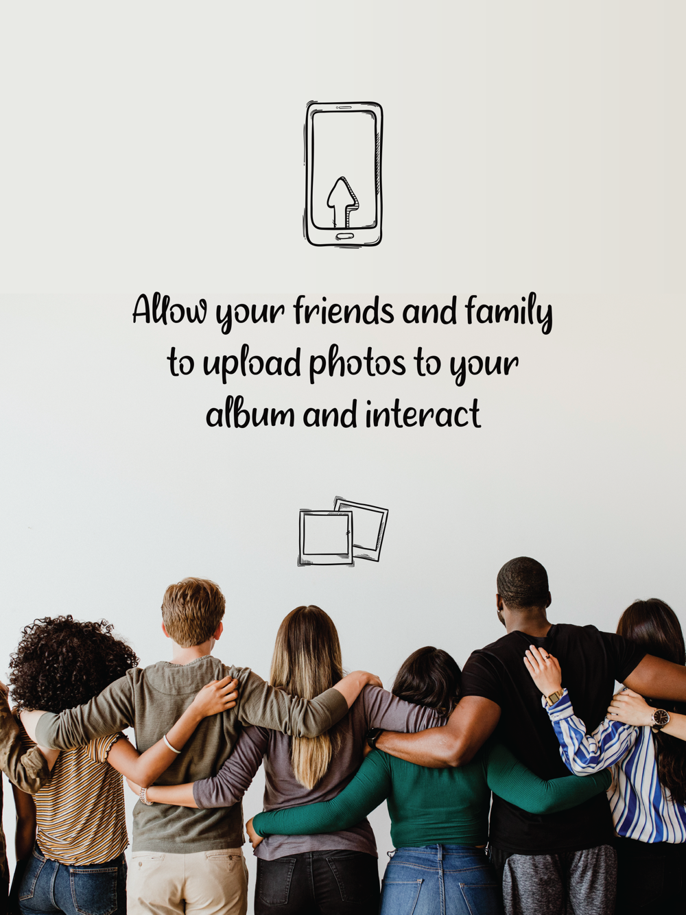 - Social, invite your family or friends to be part of your album, by invitation or QR code scanning