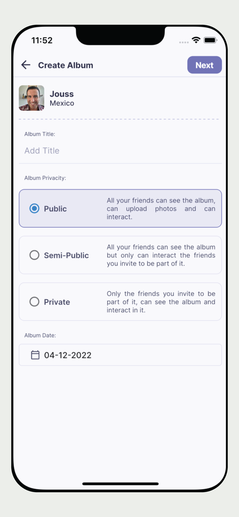- Invite whoever you want, you decide who can see, upload and interact with your album