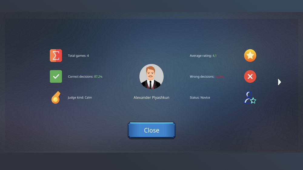 Create your own character and achieve desired goals! Read news after each game, take various awards and improve your personal statistics!