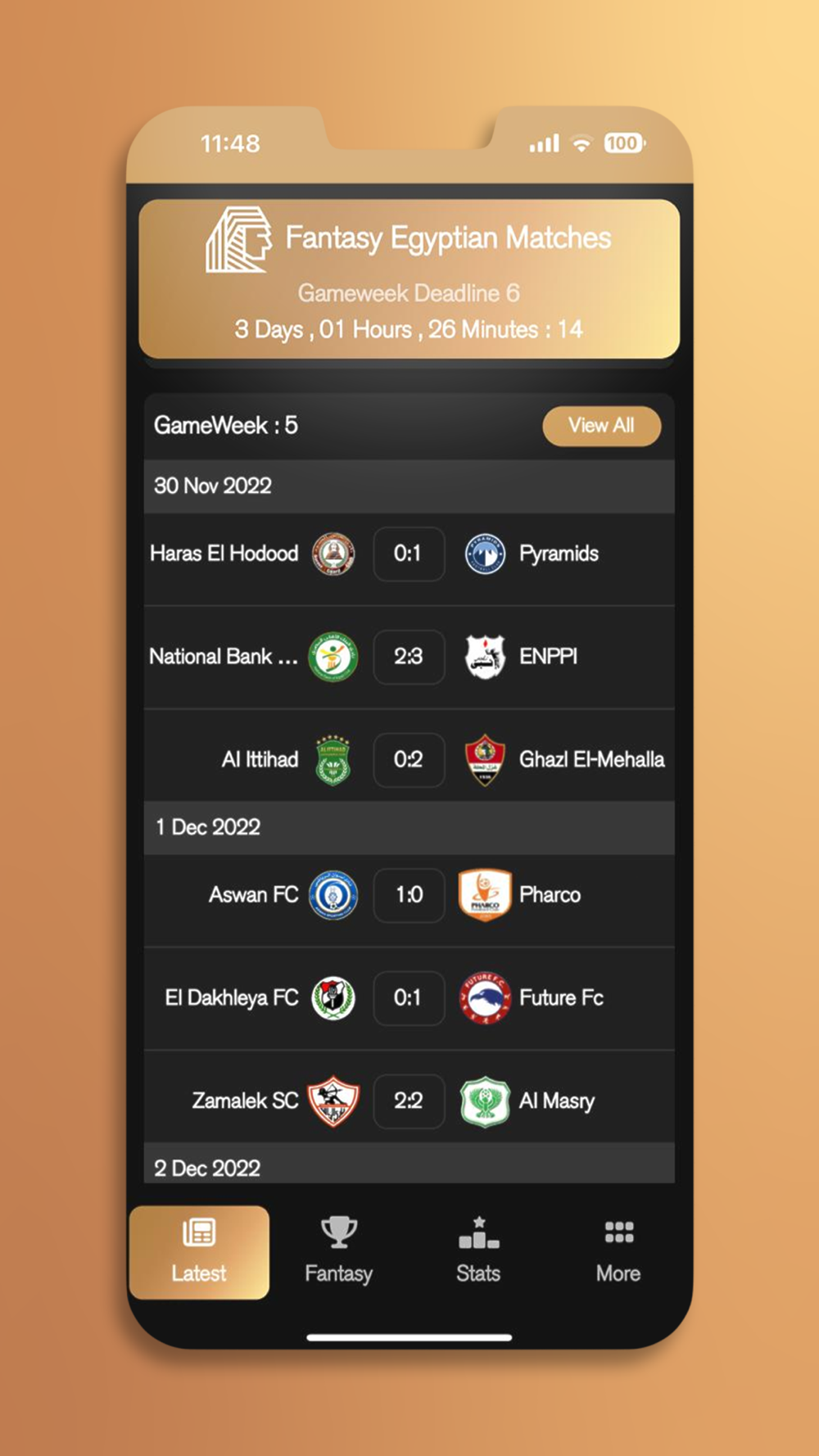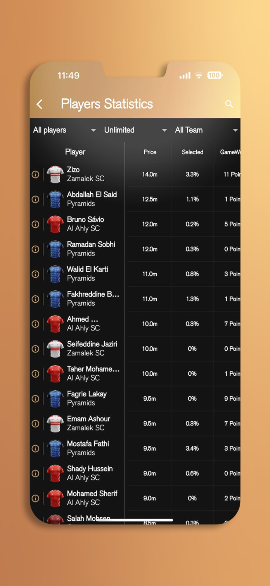 Fantasy Egyptian Matches allows you to choose a total of 15 players, including two goalkeepers, 5 defenders, 5 midfield, and 3 attackers, and you will be limited to choosing a maximum of 3 players from each team in the Egyptian League.