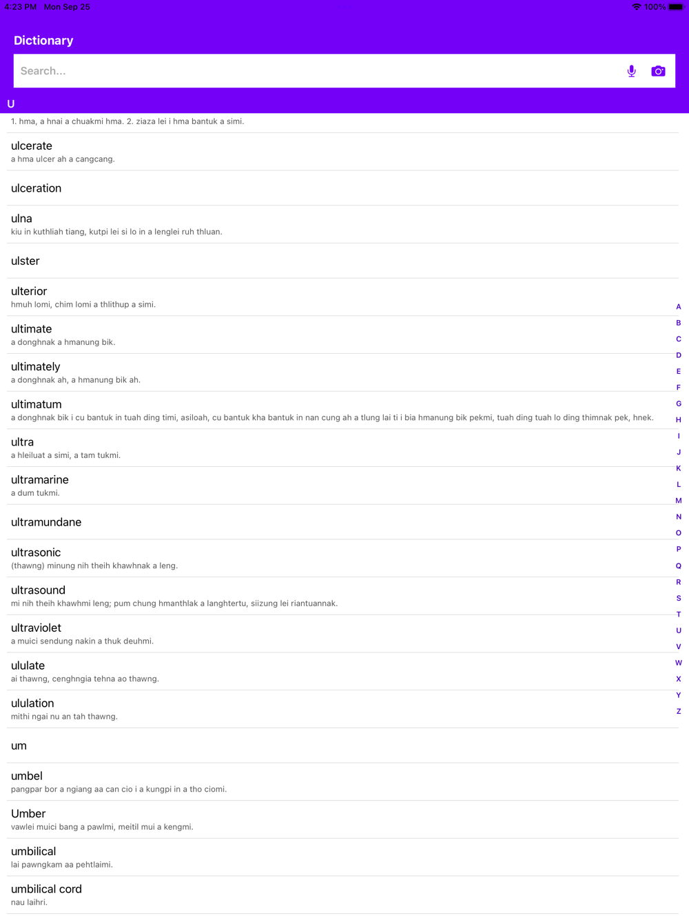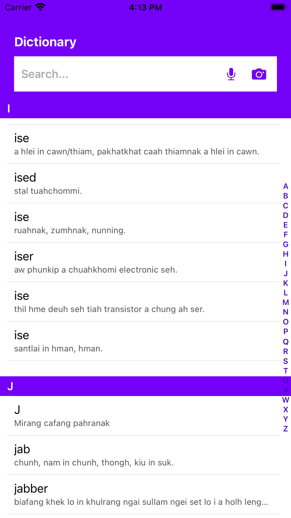 Dictionary of 30,000 English words with Chin and Myanmar meanings. You can easily browse through or search by English Word as well as by Chin Meaning.