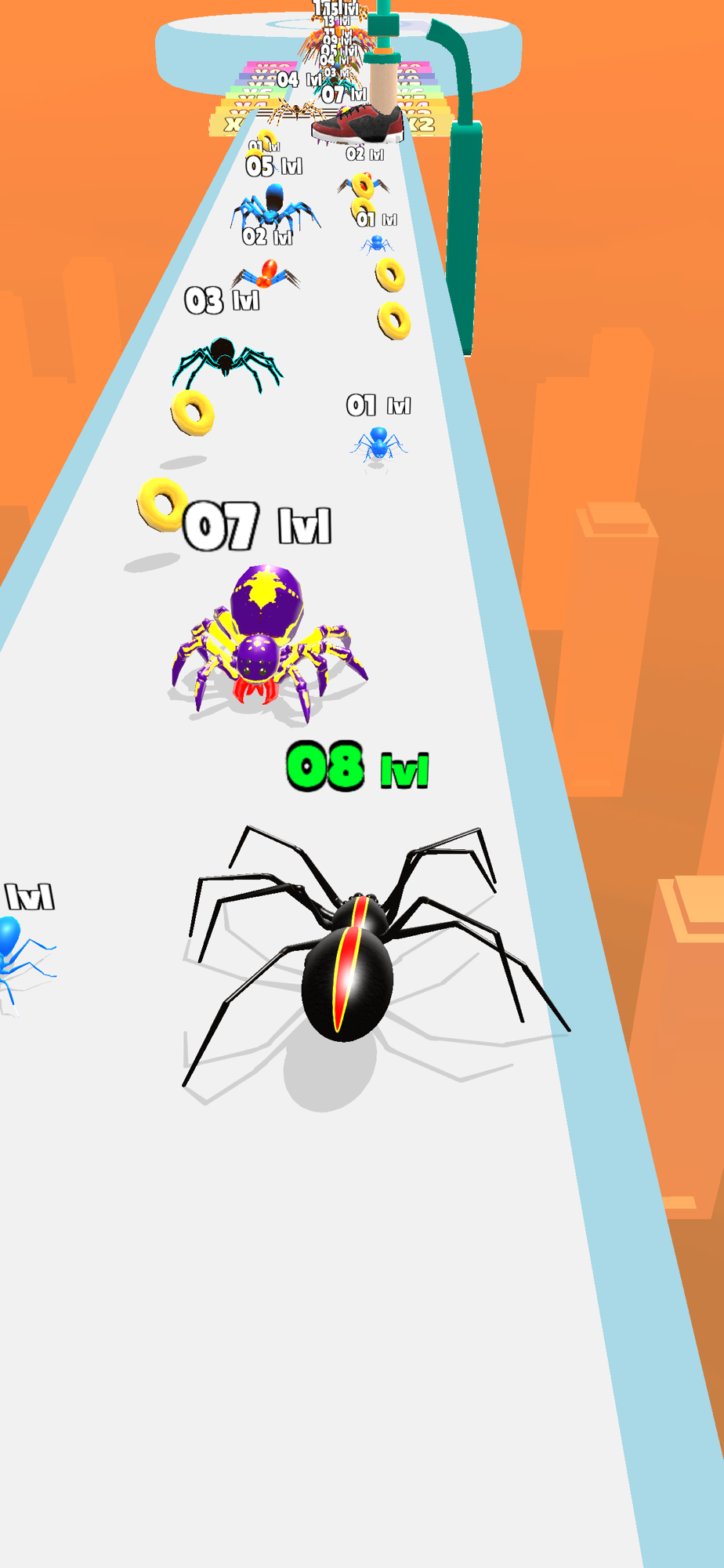 In every level, you will eat smaller and same level insects and avoid big spiders to reach the level end. After every level you will have the option to upgrade your insect or increase the speed of your spider so that you can easily win the level. At every level end, there will be a boss insect which you would have to take down but be very sure that your insect should be evolved enough to beat the boss.