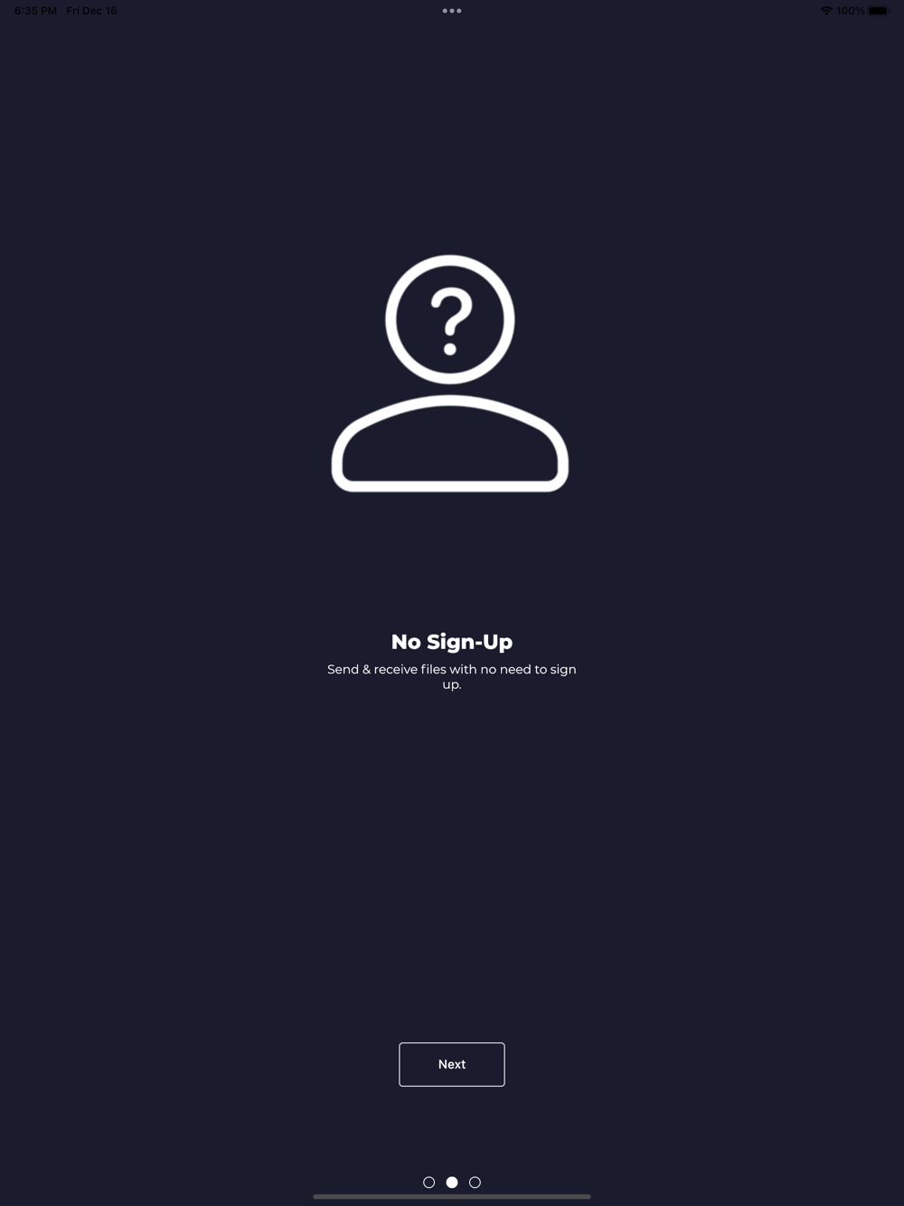- Identity-less: No need to disclose identity information (such as name, email address, or phone number) to be able to transfer files.