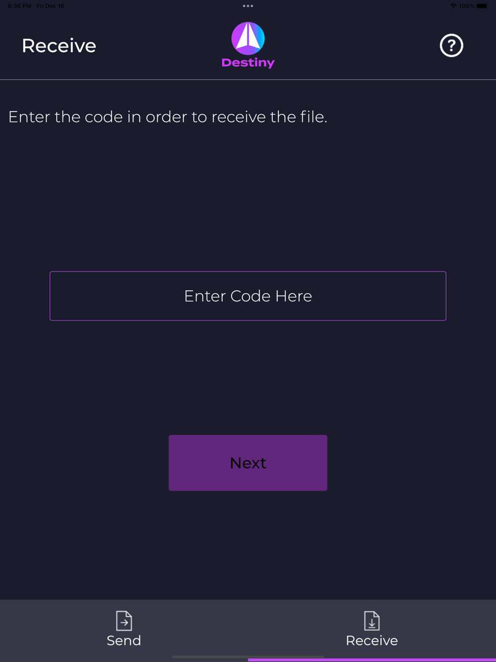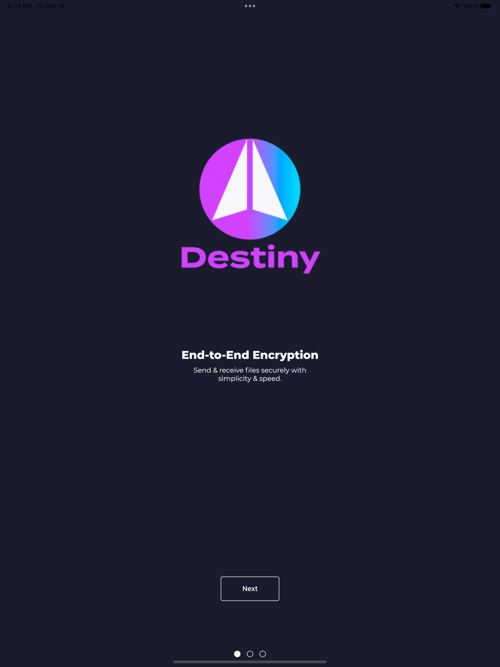 Destiny is an end-to-end encrypted file transfer app. It allows people to securely send files without needing to reveal their identity to each other, or the service provider. No sign-up is needed.