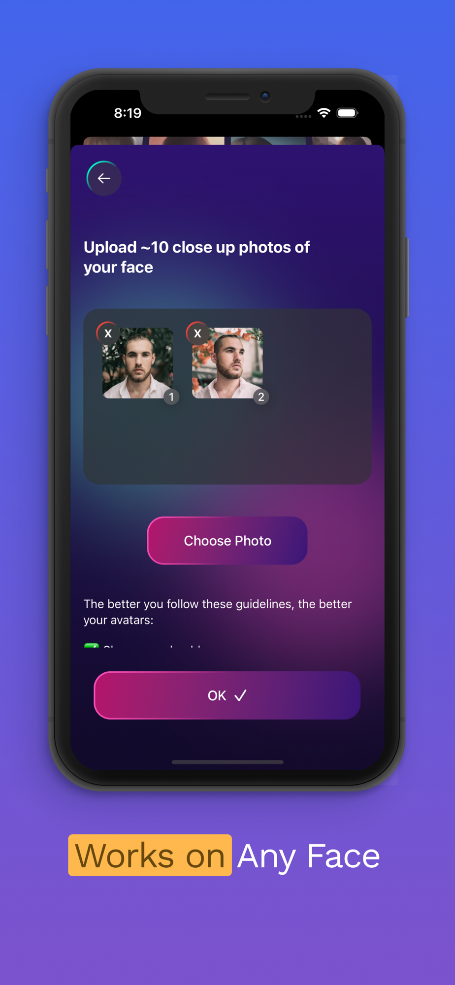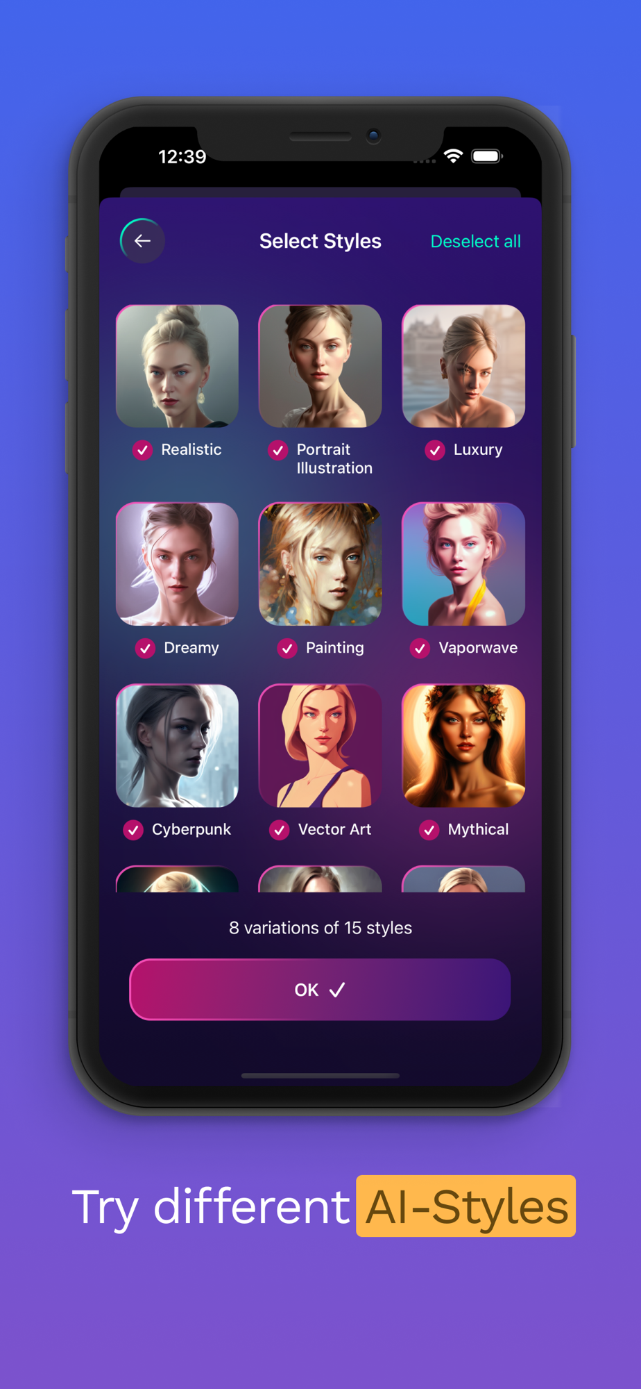 Upload ~20 photos of yourself (or your dog or cat), and get a pack of 120+ AI-generated avatars of your face, including styles like Avatar and Christmas.