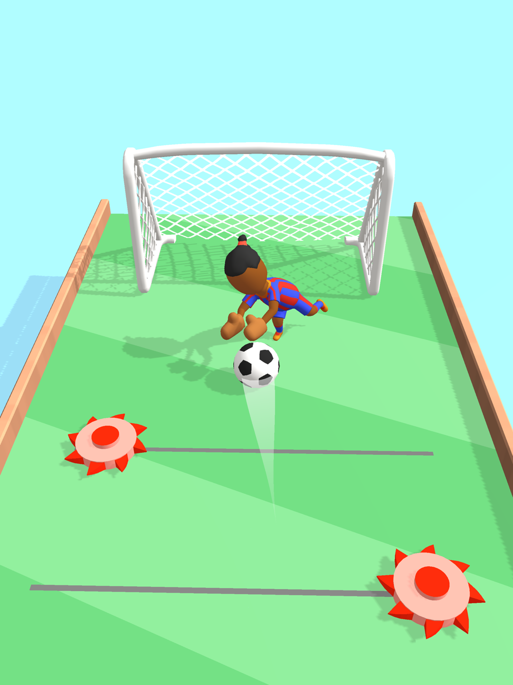 Soccer dash is a soccer game where you navigate a soccer ball through obstacles and footballers and kick the ball to score a goal.