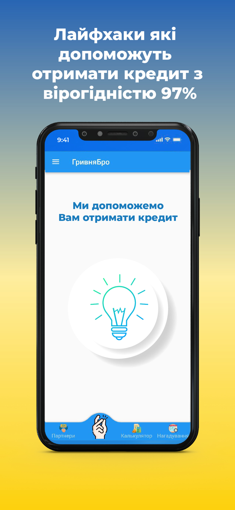 Мобильное приложение «ГривняБро: кредит онлайн» не является Банком или кредитором и не выдает кредиты. Отнеситесь к получению кредита и погашению ответственно.