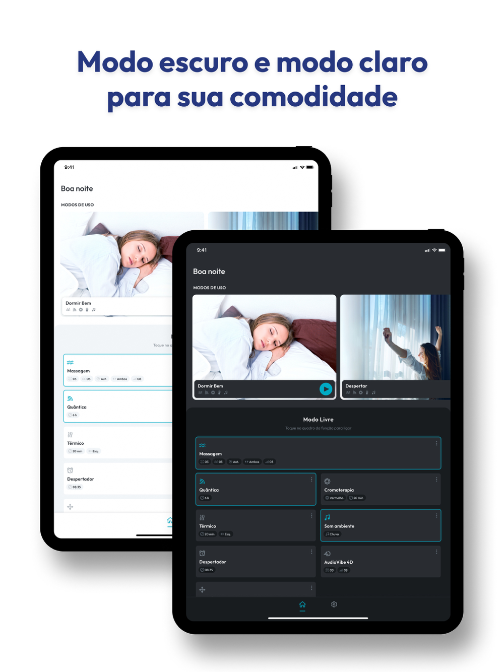 - Escute músicas e transforma suas noites de sono em um momento único, especial e reparador.