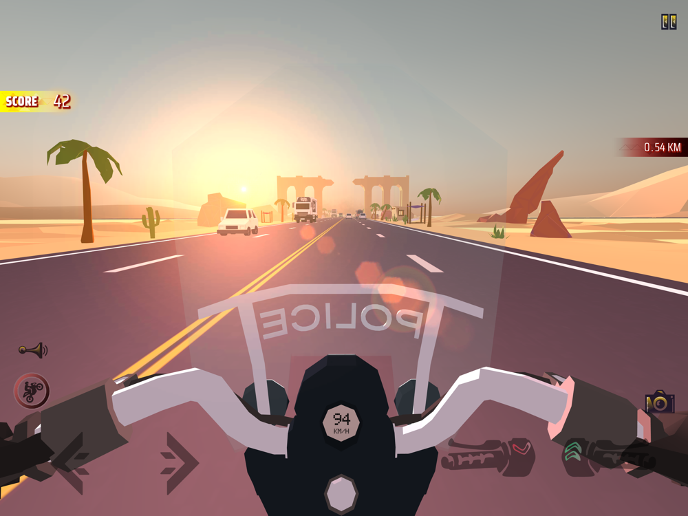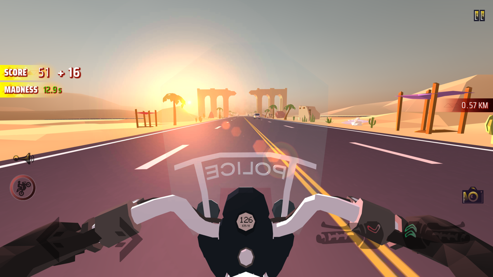 Moto Mad Racing offers you realistic driving experience packed in a colorful lowpoly world. Drive your motorcycle in first person camera and feel the speed and crash accidents as well.