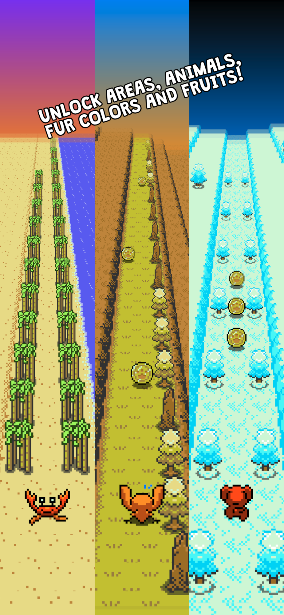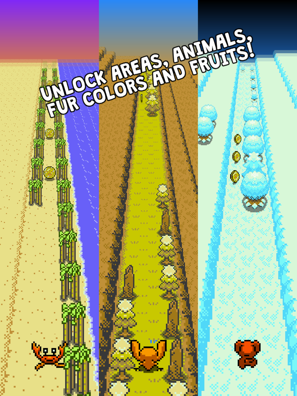 - COLLECT COINS to unlock new areas, new fruits for bonus coins, new fur colors for Taylor and new animals to run!