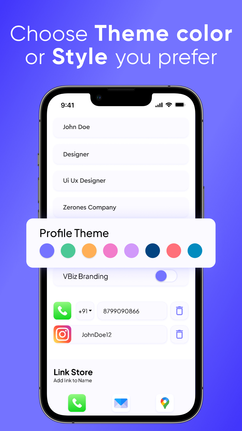 • Make and personalise digital business cards and choose from different templates, designs, and colours.