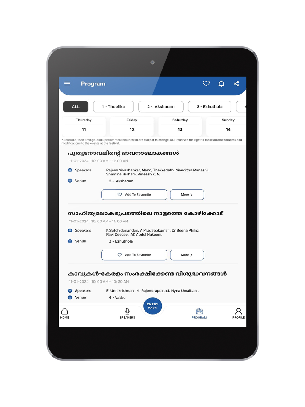 The Kerala Literature Festival stands as Asia's largest literature festival with over half a million footfall. Nestled along the shores of the Arabian Sea in Calicut, KLF caters to all ages and interests, fostering connections between readers and writers for inspiration, entertainment, and discussion. This year, KLF introduces exclusive sessions through the Friends of KLF community, offering special benefits to the members. Each year, the festival brings together top artists, actors, celebrities, writers, thinkers, and activists for meaningful discussions on literature, art, cinema, culture, dance, music, environment, science, and technology. The previous edition witnessed 500+ speakers in 250 sessions. The 2024 edition will feature Turkey as the guest nation, with prolific writers, experts, and performers from around the world participating in the seventh edition. KLF 2024 includes a cultural fest featuring eminent artists performing various events, and Cinema on the Beach. Committed to inclusivity, KLF remains an open platform for discussions and idea exchanges, welcoming a broad audience to engage in the festival's diverse offerings.