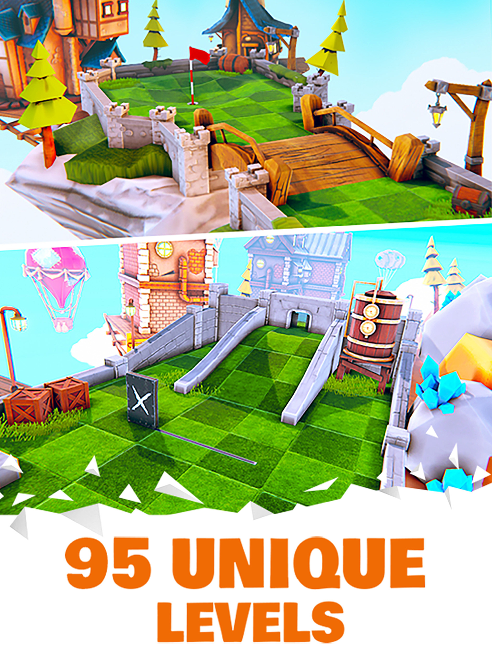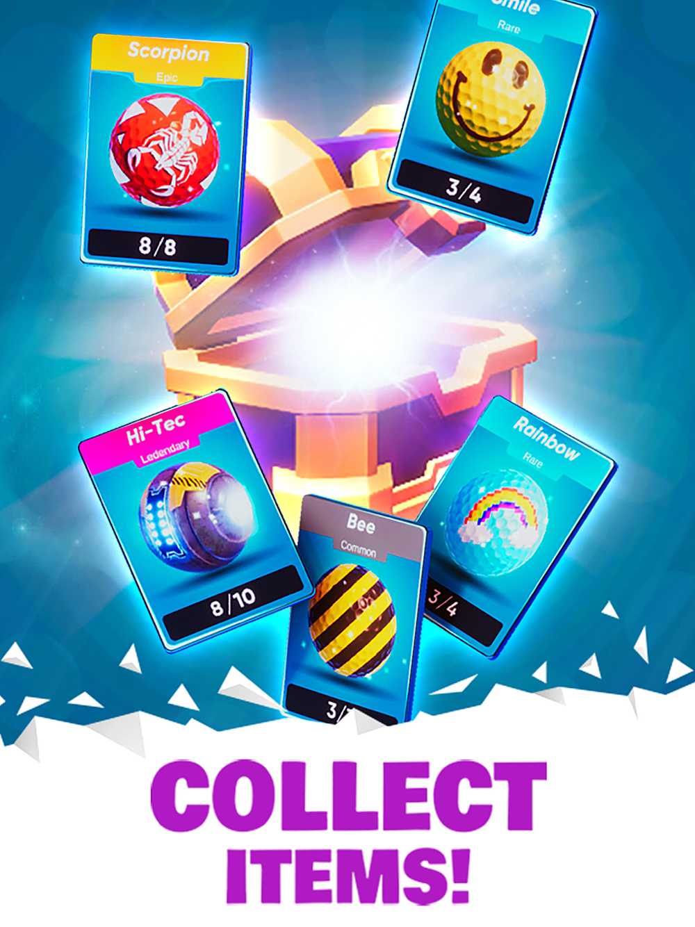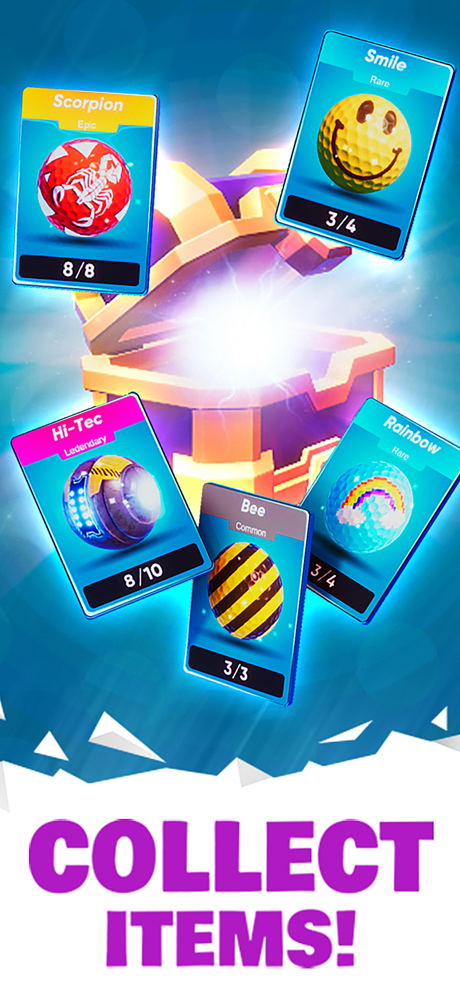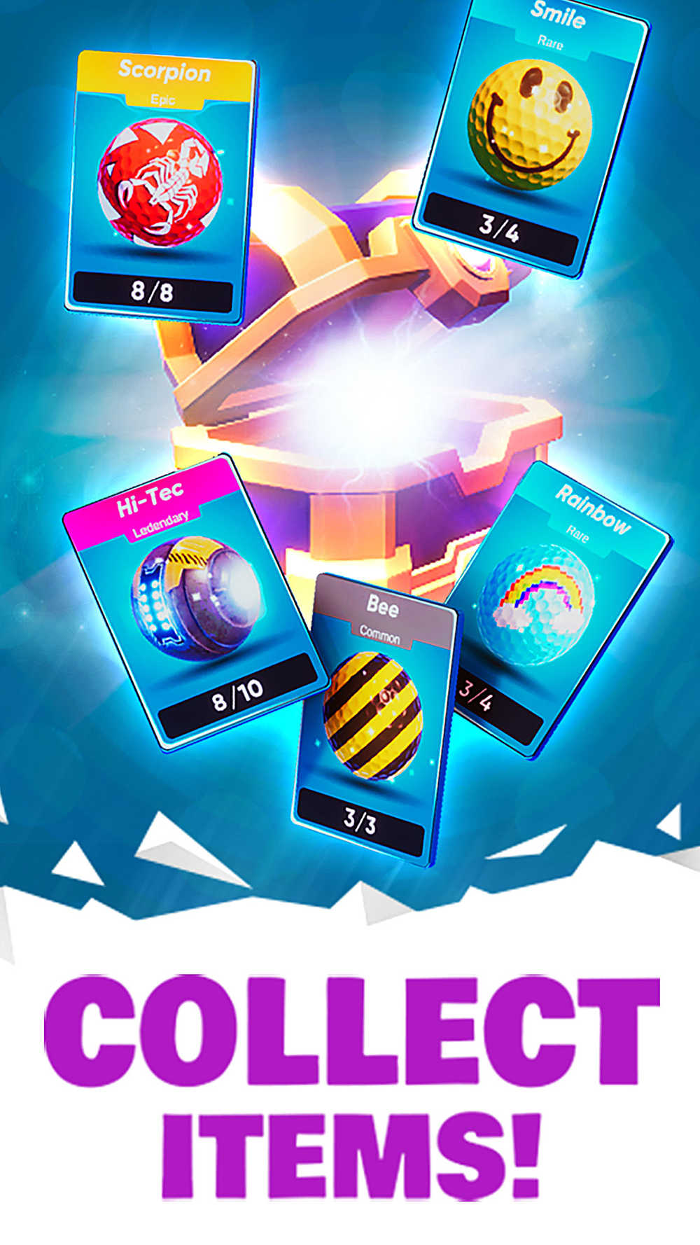 Discover and try out all the awesome minigolf tracks! Compete and earn coins and gems to unlock all the collectibles in chests.