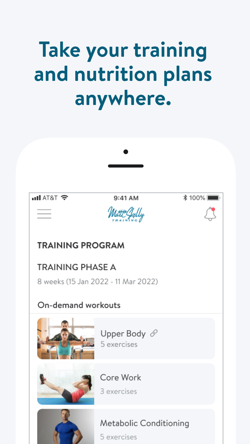 With the Matt Skelly Training App, you will have access to workout programs designed specifically to help you reach your fitness and health goals! You can follow & track your workouts, your nutrition, your lifestyle habits, measurements and results–all with the help of your coach.