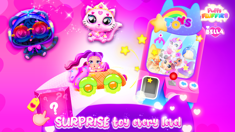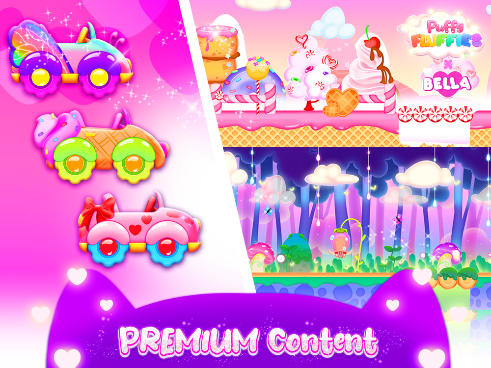 Enjoy this new car game together with the adorable Puffy Fluffies. Select the car of your dreams and hit play. Once you do that, different colorful worlds will pop up on the screen. Choose to drive on a tropical beach, a lovely garden, an enchanted forest, or even Candyland: the choice is yours! Now it is time to become a professional driver. Press on the arrow located on the bottom-right corner to start the engine and have the time of your life. If you want to stop the vehicle press the other arrow next to the one that was just mentioned. Enjoy the magical ride and collect as many coins as you can. They will be helpful later. Try your best to avoid obstacles and do not forget to press the up-arrow to jump. Put your agility to the test and be as quick as you can because you will be timed. The less you take to complete the race the better. At the end of each level, you will be rewarded with gold coins. Play as many times as you like, this will help you level up faster. After you have earned enough gold go to the store and explore all of the possible options. The boxes that you see contain amazing mystery prizes. Pick the one that you fancy by tapping on it. Open the box and enjoy the company of your new Puffy Fluffy. They are so cute and cannot wait for you to gather all of the money you need to buy them. If you want to explore other exciting worlds you should gain a lot of coins. These will be unlocked once they are bought. If you feel like you need a break while driving there is no problem. Just hit the pause button located on the top-left corner of the screen. There is no need to end the race completely. The Puffy Fluffies are very cute but they are not just for display. You can play with them because they are also squishy toys. Make sure to give them a good squeeze. See how many you can collect and above all have fun.