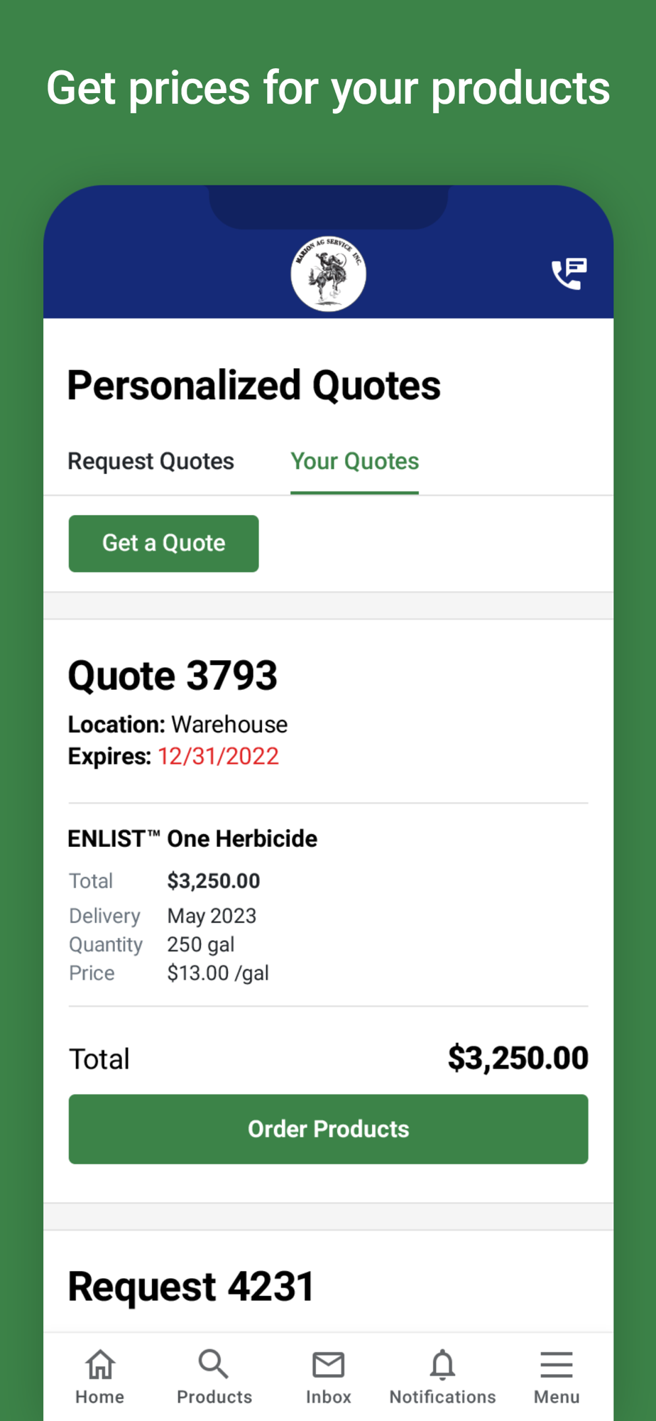 Easily look up all your Marion Ag account information, find all your previous purchases, or view and pay your invoices in a few clicks.